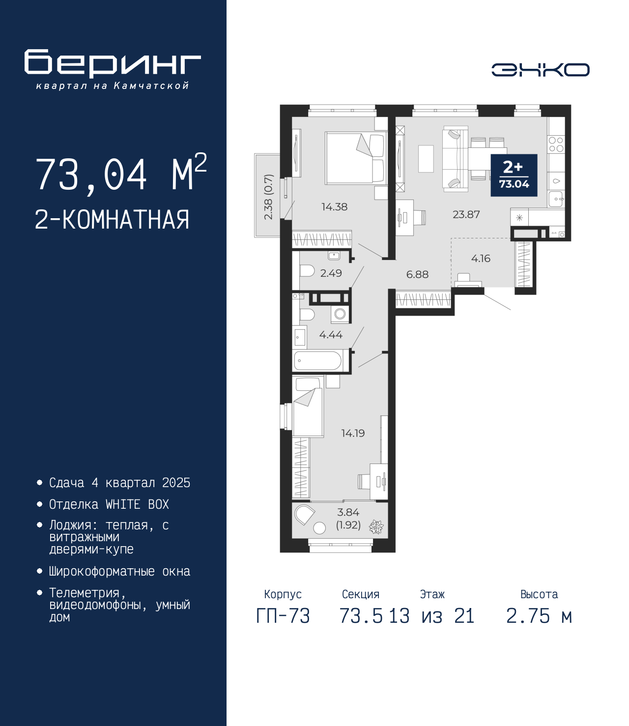 - Общая площадь 73.04 м²