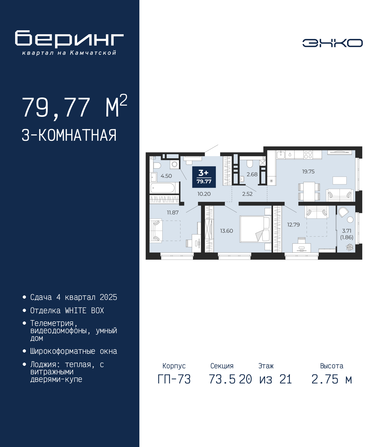 - Общая площадь 79.77 м²