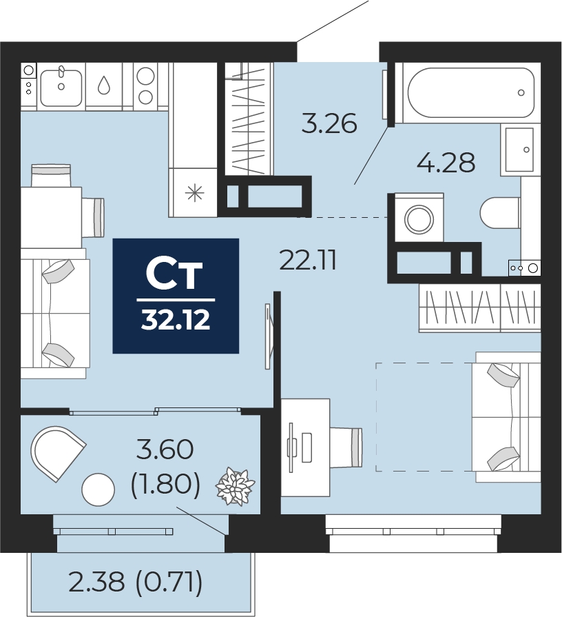 1-комн. квартира-студия с предчистовой отделкой в ЖК "Беринг" на 8 этаже. Общая площадь: 32.12 кв.м., площадь гостиной 22.11 кв.м., из которых 5 кв.м. выделено под кухонную зону. Все окна выходят на одну сторону. В квартире один балкон, один совмещенный санузел. Высота потолков 2.75 м. Дом монолитный, многоподъездный, переменной этажности, от 9 до 22 этажей. Квартира находится в 73.6-й секции высотой 9 этажей в корпусе ГП-73. На этаже 5 квартир. В подъезде 1 пассажирский и 1 грузовой лифт. Окончание строительства - 4 квартал 2025 года. Оформление сделки по договору долевого участия. Подобно знаменитому исследователю, мы чувствуем себя первооткрывателями этой локации. Хотим показать новую суть места, сформировать для вас жизненный опыт, которого ещё не было. Беринг — район зелёного цвета. Беринг — район, который откроется вам с другой стороны. Впечатлит новым уровнем комфорта и качеством жизни. Беринг — открытие на карте города. Первый квартал расположен в районе Тура, в границах улиц: Камчатская – Западносибирская – Энтузиастов. Вокруг уже есть всё для того, чтобы ежедневная рутина была лишь частью жизни и не доставляла дискомфорта. Школы и детские сады, магазины и аптеки, поликлиника, места для семейного отдыха, пеших и велопрогулок, и даже рыбалки. Масштабное озеленение дворов — визитная карточка ЭНКО и ваш оазис спокойствия, чтобы отвлечься от повседневности. Раскидистые деревья, кустарники, травы и цветы — осталось остановиться, вдохнуть и расслабиться, глядя на эту природную красоту. Стилистика подъездов продолжает концепцию Беринга, вдохновлённого Камчаткой: сдержанный, но при этом впечатляющий дизайн соседствует с удобством и функциональностью. (AQID02315539)