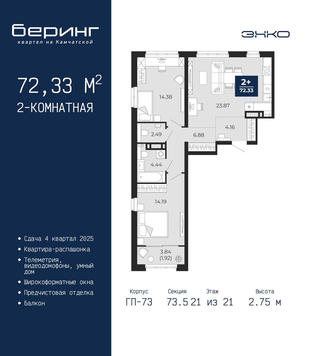 - Общая площадь 72.33 м²