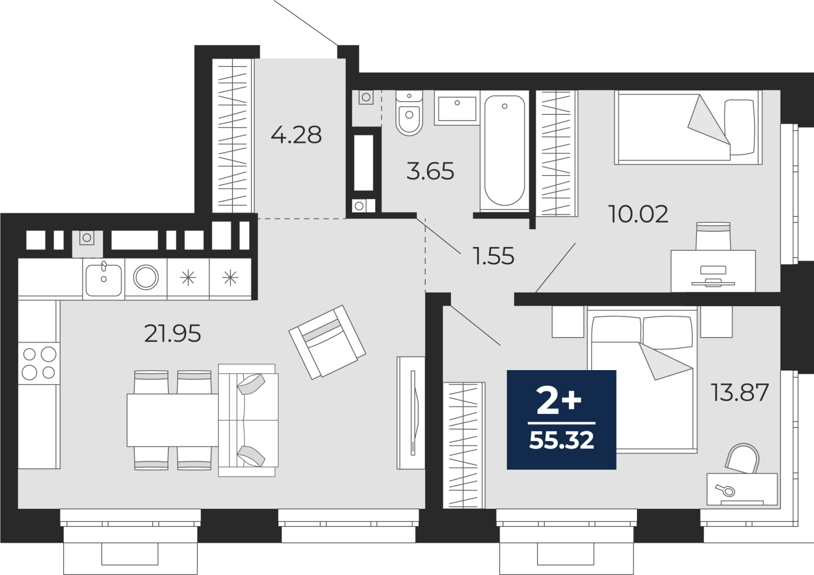 Продается двухкомнатная квартира с предчистовой отделкой в ЖК "Айвазовский City" на 6 этаже. Общая площадь: 55.32 кв.м., жилая: 23.89 кв.м., площадь просторной кухни-столовой: 21.95 кв.м. Угловая квартира, идеально подойдет любителям тишины и панорамных видов. В квартире один совмещенный санузел. Высота потолков 2.7 м. Дом монолитный, многоподъездный, высотой 24 этажа. Квартира находится во 2-й секции в корпусе ГП-12. На этаже 6 квартир. В подъезде 1 пассажирский и 1 грузовой лифт. Окончание строительства - 4 квартал 2028 года. Оформление сделки по договору долевого участия. Новый жилой район располагается в живописном месте на берегу Туры в центральной части города. Принципиально новое пространство для жизни в центре современного города для тех, чьи мечты сбываются, кто нацелен на постоянный рост, перемены к лучшему для себя и своих близких. Каждая деталь Айвазовский City вдохновляет и заряжает на новые свершения: авторская архитектура, сбалансированная продуманная инфраструктура, дизайнерские дворы со спортивными и детскими площадками, парковые зоны с фонтанами, водный канал, украшающий центральный прогулочный маршрут района и многое другое. В 2019 года проект стал лауреатом престижной премии Urban Awards 2019 в номинации «Лучший строящийся региональный жилой комплекс бизнес-класса». Главная особенность Айвазовский City - соседство разных архитектурных школ в рамках одного дома. Изысканная классика, выразительная эклектика и оригинальный модерн - жить в одном из таких домов настоящий повод для гордости. Айвазовский City это идеальное сочетание комфорта, технологий и развитой инфраструктуры. Вход в подъезд возможен с улицы и со двора. Отправляясь на работу или за покупками, жители могут выйти с внешней стороны дома, а для прогулки с ребенком – со стороны двора. Экологически чистые материалы и энергосберегающие технологии, качественное освещение общественных зон, видеонаблюдение по всей территории жилого района (в том числе в подъездах, лифтах и в подземном паркинге), закрытые дворы с доступом только для жителей Айвазовский City. Часть домов в Айвазовский City будут оснащены подземным паркингом. Востребованный в нашем климатическом поясе формат хранения автомобилей защитит собственность владельца в любое время года. Аккредитация в банках: «Сбербанк России», ОАО «Альфа-Банк», ПАО «Газпромбанк», ПАО Банк «ВТБ», ПАО «Совкомбанк» и других. (AQID02525679)