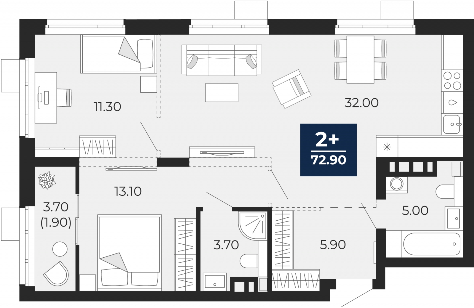Продается 2-комн. квартира с предчистовой отделкой в ЖК "Айвазовский City" на 7 этаже. Общая площадь: 72.9 кв.м., жилая: 24.4 кв.м., площадь просторной кухни-столовой: 32 кв.м. Угловая квартира, идеально подойдет любителям тишины и панорамных видов. В квартире одна лоджия, два совмещенных санузла. Высота потолков 2.72 м. Дом монолитный, многоподъездный, переменной этажности, от 9 до 24 этажей. Квартира находится в 5-й секции высотой 9 этажей в корпусе ГП-7. На этаже 7 квартир. В подъезде 1 пассажирский и 2 грузовых лифта. Окончание строительства - 3 квартал 2026 года. Оформление сделки по договору долевого участия. Новый жилой район располагается в живописном месте на берегу Туры в центральной части города. Принципиально новое пространство для жизни в центре современного города для тех, чьи мечты сбываются, кто нацелен на постоянный рост, перемены к лучшему для себя и своих близких. Каждая деталь Айвазовский City вдохновляет и заряжает на новые свершения: авторская архитектура, сбалансированная продуманная инфраструктура, дизайнерские дворы со спортивными и детскими площадками, парковые зоны с фонтанами, водный канал, украшающий центральный прогулочный маршрут района и многое другое. В 2019 года проект стал лауреатом престижной премии Urban Awards 2019 в номинации «Лучший строящийся региональный жилой комплекс бизнес-класса». Главная особенность Айвазовский City - соседство разных архитектурных школ в рамках одного дома. Изысканная классика, выразительная эклектика и оригинальный модерн - жить в одном из таких домов настоящий повод для гордости. Айвазовский City это идеальное сочетание комфорта, технологий и развитой инфраструктуры. Вход в подъезд возможен с улицы и со двора. Отправляясь на работу или за покупками, жители могут выйти с внешней стороны дома, а для прогулки с ребенком – со стороны двора. Экологически чистые материалы и энергосберегающие технологии, качественное освещение общественных зон, видеонаблюдение по всей территории жилого района (в том числе в подъездах, лифтах и в подземном паркинге), закрытые дворы с доступом только для жителей Айвазовский City. Часть домов в Айвазовский City будут оснащены подземным паркингом. Востребованный в нашем климатическом поясе формат хранения автомобилей защитит собственность владельца в любое время года. Аккредитация в банках: ПАО «Газпромбанк», ОАО «Альфа-Банк», «Сбербанк России», ПАО Банк «ВТБ», АО "ДОМ.РФ" и других. (AQID02487976)