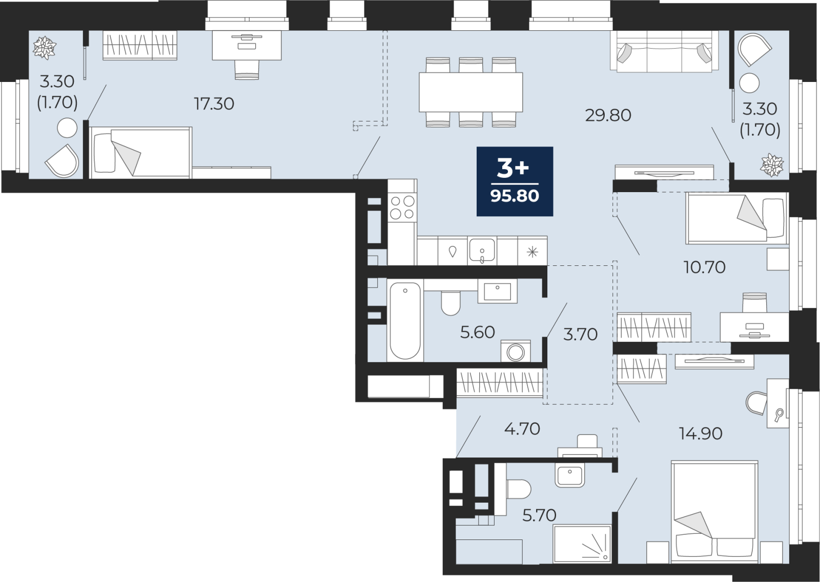 - Общая площадь 95.8 м²