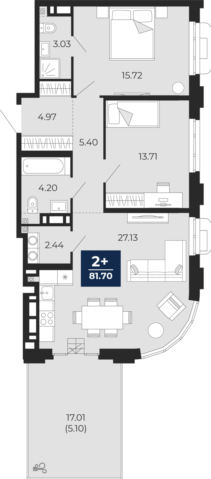 2-комн. квартира с предчистовой отделкой в ЖК "Айвазовский City" на 10 этаже. Общая площадь: 81.7 кв.м., жилая: 29.43 кв.м., площадь просторной кухни-столовой: 27.13 кв.м. Квартира угловая, окна oбecпeчивaют paвнoмepнoe ocвeщeниe в тeчeниe дня. В квартире один балкон, два совмещенных санузла. Терраса представляет собой роскошную зону отдыха, где вы на свой вкус можете создать атмосферу комфорта и уюта. Высота потолков 2.7 м. Дом монолитный, многоподъездный, высотой 24 этажа. Квартира находится в 5-й секции в корпусе ГП-12. На этаже 5 квартир. В подъезде 1 пассажирский и 1 грузовой лифт. Окончание строительства - 4 квартал 2028 года. Оформление сделки по договору долевого участия. Новый жилой район располагается в живописном месте на берегу Туры в центральной части города. Принципиально новое пространство для жизни в центре современного города для тех, чьи мечты сбываются, кто нацелен на постоянный рост, перемены к лучшему для себя и своих близких. Каждая деталь Айвазовский City вдохновляет и заряжает на новые свершения: авторская архитектура, сбалансированная продуманная инфраструктура, дизайнерские дворы со спортивными и детскими площадками, парковые зоны с фонтанами, водный канал, украшающий центральный прогулочный маршрут района и многое другое. В 2019 года проект стал лауреатом престижной премии Urban Awards 2019 в номинации «Лучший строящийся региональный жилой комплекс бизнес-класса». Главная особенность Айвазовский City - соседство разных архитектурных школ в рамках одного дома. Изысканная классика, выразительная эклектика и оригинальный модерн - жить в одном из таких домов настоящий повод для гордости. Айвазовский City это идеальное сочетание комфорта, технологий и развитой инфраструктуры. Вход в подъезд возможен с улицы и со двора. Отправляясь на работу или за покупками, жители могут выйти с внешней стороны дома, а для прогулки с ребенком – со стороны двора. Экологически чистые материалы и энергосберегающие технологии, качественное освещение общественных зон, видеонаблюдение по всей территории жилого района (в том числе в подъездах, лифтах и в подземном паркинге), закрытые дворы с доступом только для жителей Айвазовский City. Часть домов в Айвазовский City будут оснащены подземным паркингом. Востребованный в нашем климатическом поясе формат хранения автомобилей защитит собственность владельца в любое время года. Аккредитация в банках: «Сбербанк России», ПАО Банк «ВТБ», ПАО «Газпромбанк», ОАО «Альфа-Банк», ПАО АКБ «Абсолют Банк» и других. (AQID02525769)