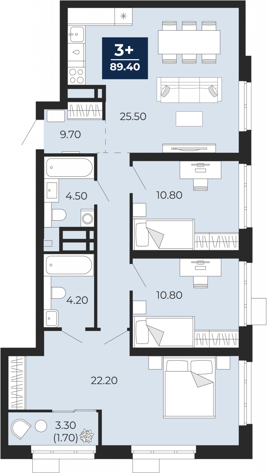 - Общая площадь 89.4 м²
