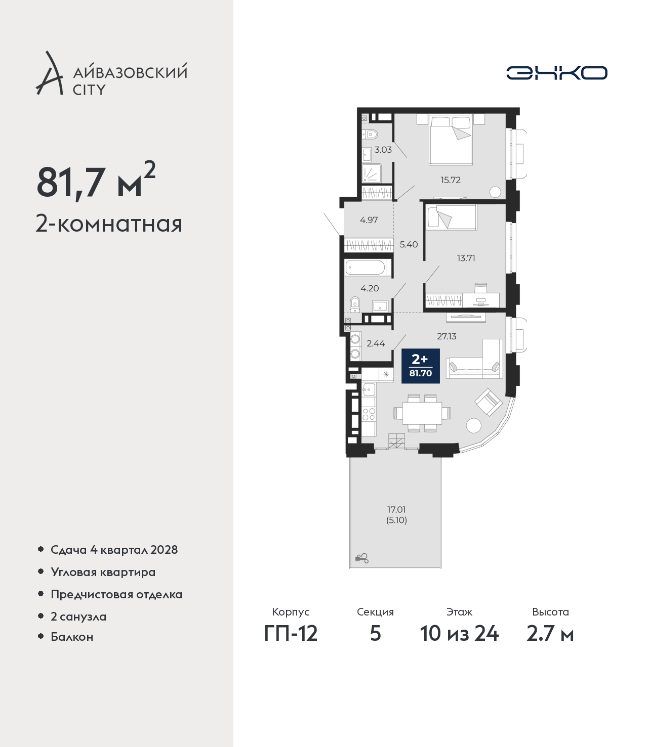 - Общая площадь 81.7 м²