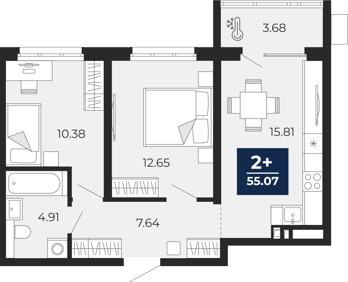 Продается 2-комн. квартира с предчистовой отделкой в ЖК "Беринг" на 2 этаже. Общая площадь: 53.23 кв.м., жилая: 23.03 кв.м., площадь просторной кухни-столовой: 15.81 кв.м. Комнаты изолированные, все окна выходят на одну сторону. В квартире один балкон, один совмещенный санузел. Высота потолков 2.72 м. Дом монолитный, многоподъездный, переменной этажности, от 17 до 24 этажей. Квартира находится в 7-й секции высотой 19 этажей в корпусе ГП-75. На этаже 7 квартир. В подъезде 2 пассажирских и 1 грузовой лифт. Окончание строительства - 4 квартал 2027 года. Оформление сделки по договору долевого участия. Подобно знаменитому исследователю, мы чувствуем себя первооткрывателями этой локации. Хотим показать новую суть места, сформировать для вас жизненный опыт, которого ещё не было. Беринг — район зелёного цвета. Беринг — район, который откроется вам с другой стороны. Впечатлит новым уровнем комфорта и качеством жизни. Беринг — открытие на карте города. Первый квартал расположен в районе Тура, в границах улиц: Камчатская – Западносибирская – Энтузиастов. Вокруг уже есть всё для того, чтобы ежедневная рутина была лишь частью жизни и не доставляла дискомфорта. Школы и детские сады, магазины и аптеки, поликлиника, места для семейного отдыха, пеших и велопрогулок, и даже рыбалки. Масштабное озеленение дворов — визитная карточка ЭНКО и ваш оазис спокойствия, чтобы отвлечься от повседневности. Раскидистые деревья, кустарники, травы и цветы — осталось остановиться, вдохнуть и расслабиться, глядя на эту природную красоту. Стилистика подъездов продолжает концепцию Беринга, вдохновлённого Камчаткой: сдержанный, но при этом впечатляющий дизайн соседствует с удобством и функциональностью. (AQID02529655)