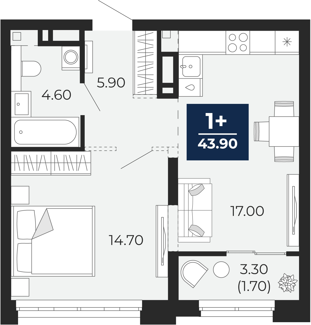 Однокомнатная квартира с предчистовой отделкой в ЖК "Айвазовский City" на 7 этаже. Общая площадь: 43.9 кв.м., жилая: 14.7 кв.м., площадь просторной кухни-столовой: 17 кв.м. Все окна выходят на одну сторону. В квартире одна лоджия, один совмещенный санузел. Высота потолков 2.72 м. Дом монолитный, многоподъездный, переменной этажности, от 9 до 24 этажей. Квартира находится в 4-й секции высотой 18 этажей в корпусе ГП-7. На этаже 5 квартир. В подъезде 1 пассажирский и 2 грузовых лифта. Окончание строительства - 3 квартал 2026 года. Оформление сделки по договору долевого участия. Новый жилой район располагается в живописном месте на берегу Туры в центральной части города. Принципиально новое пространство для жизни в центре современного города для тех, чьи мечты сбываются, кто нацелен на постоянный рост, перемены к лучшему для себя и своих близких. Каждая деталь Айвазовский City вдохновляет и заряжает на новые свершения: авторская архитектура, сбалансированная продуманная инфраструктура, дизайнерские дворы со спортивными и детскими площадками, парковые зоны с фонтанами, водный канал, украшающий центральный прогулочный маршрут района и многое другое. В 2019 года проект стал лауреатом престижной премии Urban Awards 2019 в номинации «Лучший строящийся региональный жилой комплекс бизнес-класса». Главная особенность Айвазовский City - соседство разных архитектурных школ в рамках одного дома. Изысканная классика, выразительная эклектика и оригинальный модерн - жить в одном из таких домов настоящий повод для гордости. Айвазовский City это идеальное сочетание комфорта, технологий и развитой инфраструктуры. Вход в подъезд возможен с улицы и со двора. Отправляясь на работу или за покупками, жители могут выйти с внешней стороны дома, а для прогулки с ребенком – со стороны двора. Экологически чистые материалы и энергосберегающие технологии, качественное освещение общественных зон, видеонаблюдение по всей территории жилого района (в том числе в подъездах, лифтах и в подземном паркинге), закрытые дворы с доступом только для жителей Айвазовский City. Часть домов в Айвазовский City будут оснащены подземным паркингом. Востребованный в нашем климатическом поясе формат хранения автомобилей защитит собственность владельца в любое время года. Аккредитация в банках: ПАО Банк «ВТБ», «Сбербанк России», ОАО «Альфа-Банк», ПАО «Газпромбанк», ПАО Банк «ФК Открытие» и других. (AQID02343154)