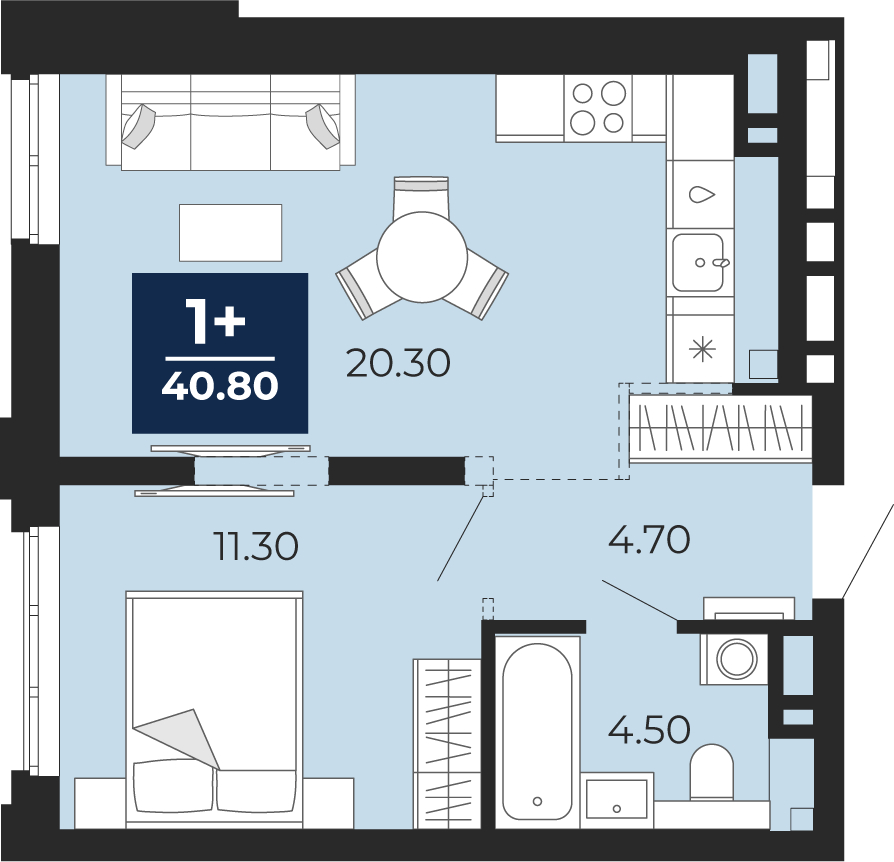 Квартира 1-комн., 41 м2, 10/14 этаж,
