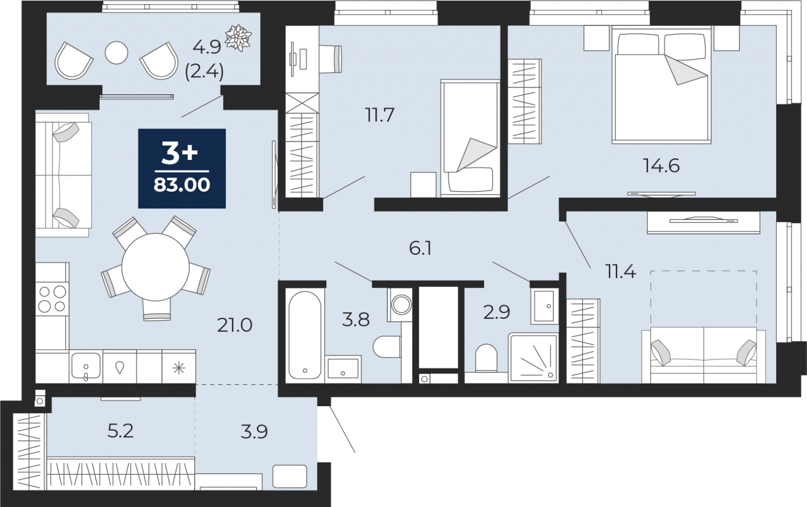 - Общая площадь 83 м²