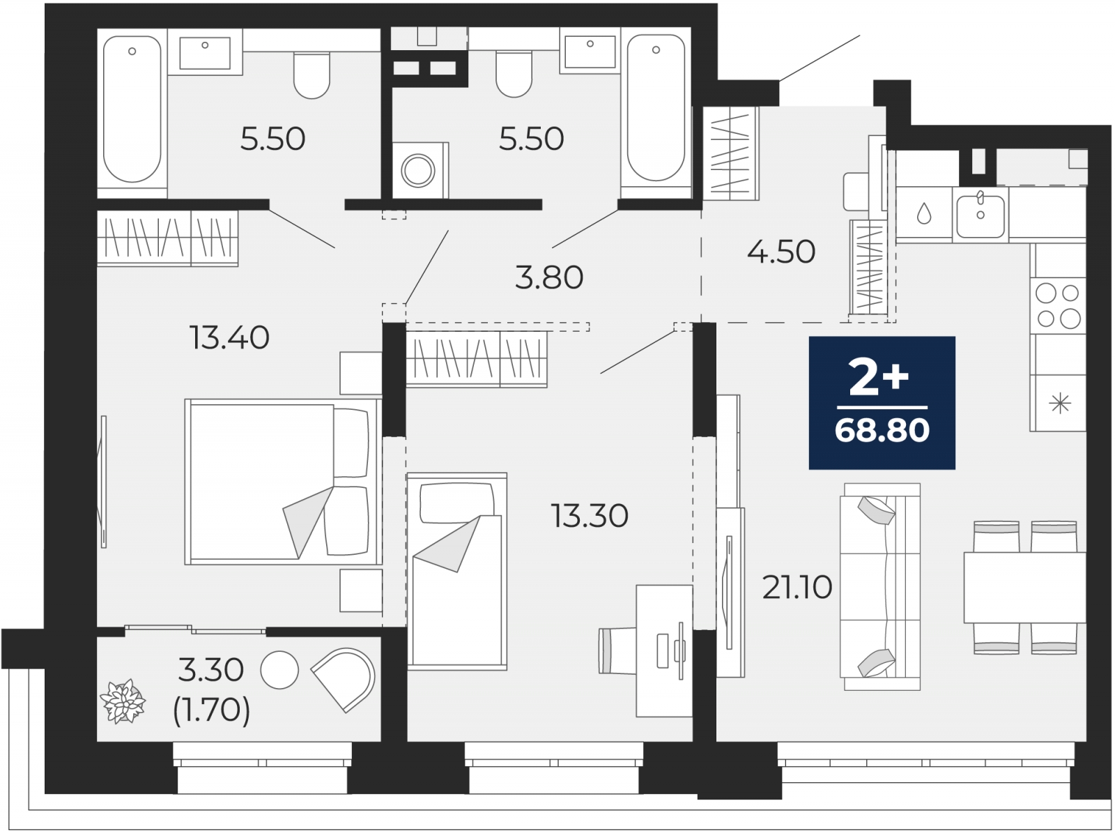 Продается 2-комн. квартира с предчистовой отделкой в ЖК "Айвазовский City" на 2 этаже. Общая площадь: 68.8 кв.м., жилая: 26.7 кв.м., площадь просторной кухни-столовой: 21.1 кв.м. Комнаты изолированные, все окна выходят на одну сторону. В квартире одна лоджия, два совмещенных санузла. Высота потолков 2.72 м. Дом монолитный, многоподъездный, переменной этажности, от 9 до 24 этажей. Квартира находится в 4-й секции высотой 18 этажей в корпусе ГП-7. На этаже 5 квартир. В подъезде 1 пассажирский и 2 грузовых лифта. Окончание строительства - 3 квартал 2026 года. Оформление сделки по договору долевого участия. Новый жилой район располагается в живописном месте на берегу Туры в центральной части города. Принципиально новое пространство для жизни в центре современного города для тех, чьи мечты сбываются, кто нацелен на постоянный рост, перемены к лучшему для себя и своих близких. Каждая деталь Айвазовский City вдохновляет и заряжает на новые свершения: авторская архитектура, сбалансированная продуманная инфраструктура, дизайнерские дворы со спортивными и детскими площадками, парковые зоны с фонтанами, водный канал, украшающий центральный прогулочный маршрут района и многое другое. В 2019 года проект стал лауреатом престижной премии Urban Awards 2019 в номинации «Лучший строящийся региональный жилой комплекс бизнес-класса». Главная особенность Айвазовский City - соседство разных архитектурных школ в рамках одного дома. Изысканная классика, выразительная эклектика и оригинальный модерн - жить в одном из таких домов настоящий повод для гордости. Айвазовский City это идеальное сочетание комфорта, технологий и развитой инфраструктуры. Вход в подъезд возможен с улицы и со двора. Отправляясь на работу или за покупками, жители могут выйти с внешней стороны дома, а для прогулки с ребенком – со стороны двора. Экологически чистые материалы и энергосберегающие технологии, качественное освещение общественных зон, видеонаблюдение по всей территории жилого района (в том числе в подъездах, лифтах и в подземном паркинге), закрытые дворы с доступом только для жителей Айвазовский City. Часть домов в Айвазовский City будут оснащены подземным паркингом. Востребованный в нашем климатическом поясе формат хранения автомобилей защитит собственность владельца в любое время года. Аккредитация в банках: ПАО «Газпромбанк», «Сбербанк России», ПАО Банк «ВТБ», ОАО «Альфа-Банк», АО "ДОМ.РФ" и других. (AQID02343176)