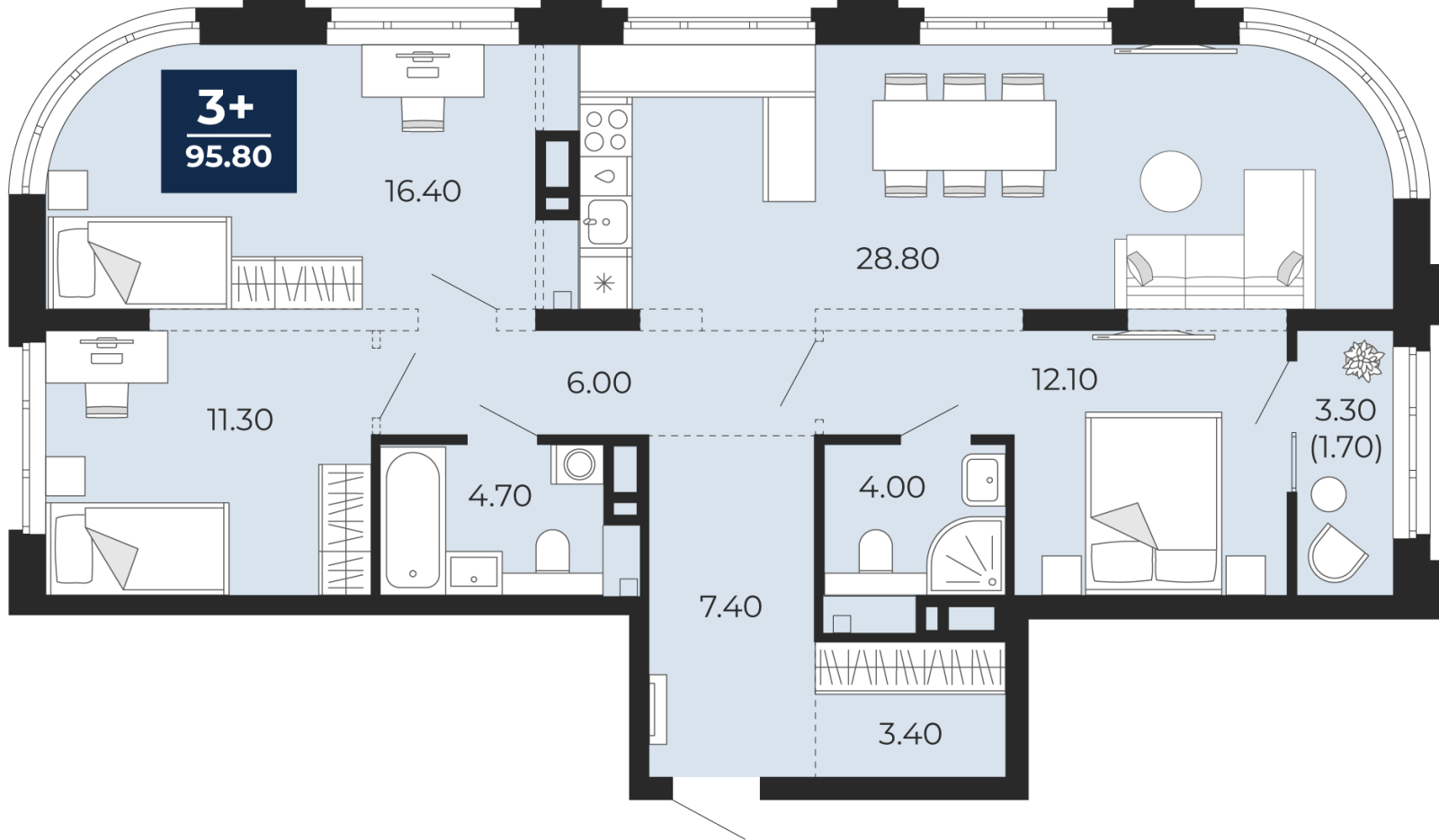 Просторная 3-комн. квартира с предчистовой отделкой в ЖК "Айвазовский City" на 3 этаже. Общая площадь: 95.8 кв.м., жилая: 39.8 кв.м., площадь просторной кухни-столовой: 28.8 кв.м. Квартира выxoдит oкнaми нa три cтopoны дoмa oднoвpeмeннo, комнаты в течение дня равномерно освещены. В квартире одна лоджия, два совмещенных санузла. Высота потолков 2.7 м. Дом монолитный, многоподъездный, переменной этажности, от 14 до 24 этажей. Квартира находится в 5-й секции высотой 14 этажей в корпусе ГП-8. На этаже 5 квартир. В подъезде 1 пассажирский и 1 грузовой лифт. Окончание строительства - 3 квартал 2026 года. Оформление сделки по договору долевого участия. Новый жилой район располагается в живописном месте на берегу Туры в центральной части города. Принципиально новое пространство для жизни в центре современного города для тех, чьи мечты сбываются, кто нацелен на постоянный рост, перемены к лучшему для себя и своих близких. Каждая деталь Айвазовский City вдохновляет и заряжает на новые свершения: авторская архитектура, сбалансированная продуманная инфраструктура, дизайнерские дворы со спортивными и детскими площадками, парковые зоны с фонтанами, водный канал, украшающий центральный прогулочный маршрут района и многое другое. В 2019 года проект стал лауреатом престижной премии Urban Awards 2019 в номинации «Лучший строящийся региональный жилой комплекс бизнес-класса». Главная особенность Айвазовский City - соседство разных архитектурных школ в рамках одного дома. Изысканная классика, выразительная эклектика и оригинальный модерн - жить в одном из таких домов настоящий повод для гордости. Айвазовский City это идеальное сочетание комфорта, технологий и развитой инфраструктуры. Вход в подъезд возможен с улицы и со двора. Отправляясь на работу или за покупками, жители могут выйти с внешней стороны дома, а для прогулки с ребенком – со стороны двора. Экологически чистые материалы и энергосберегающие технологии, качественное освещение общественных зон, видеонаблюдение по всей территории жилого района (в том числе в подъездах, лифтах и в подземном паркинге), закрытые дворы с доступом только для жителей Айвазовский City. Часть домов в Айвазовский City будут оснащены подземным паркингом. Востребованный в нашем климатическом поясе формат хранения автомобилей защитит собственность владельца в любое время года. Аккредитация в банках: ПАО «Газпромбанк», ОАО «Альфа-Банк», ПАО Банк «ВТБ», «Сбербанк России», ПАО «Промсвязьбанк» и других. (AQID02403838)