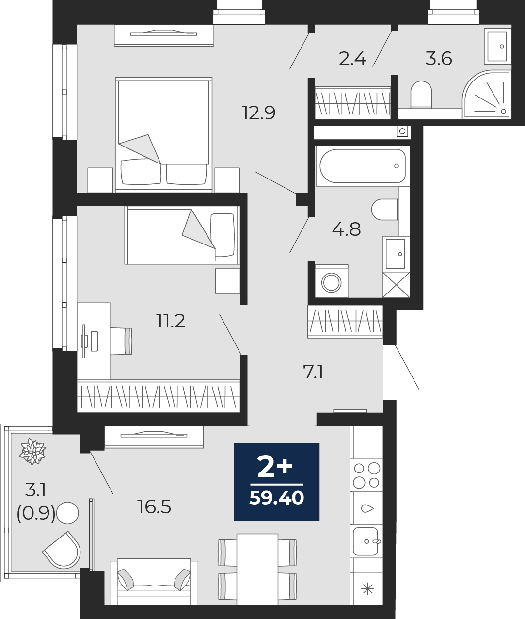 Двухкомнатная квартира с предчистовой отделкой в ЖК "Мириады" на 14 этаже. Общая площадь: 59.4 кв.м., жилая: 23.9 кв.м., площадь просторной кухни-столовой: 16.5 кв.м. Квартира угловая, идеально подойдет любителям тишины и панорамных видов. В квартире один балкон, два совмещенных санузла. Высота потолков 2.7 м. Дом монолитный, трехподъездный, переменной этажности, от 14 до 16 этажей. Квартира находится в 3-й секции высотой 14 этажей в корпусе ГП-72.103. На этаже 8 квартир. В подъезде 1 пассажирский и 1 грузовой лифт. Окончание строительства - 4 квартал 2025 года. Оформление сделки по договору долевого участия. Вселенная бесконечных историй. Ранее невиданный Тюмени масштаб: территория 240 гектаров и 1 650 000 м² застройки. Мириады – это город масштабных перемен и больших возможностей. Город зеленых рощ и зеркальных озер. Город для работы, учебы и развлечений. Город для детей и их родителей. Город для всех и каждого. Проект расположен в районе Мыс рядом с ТРЦ «Тюмень Сити Молл» в границах улицы Тимофея Чаркова, Тобольского тракта и объездной дороги. Срок полного освоения территории - до 2034 года. (AQID02536579)