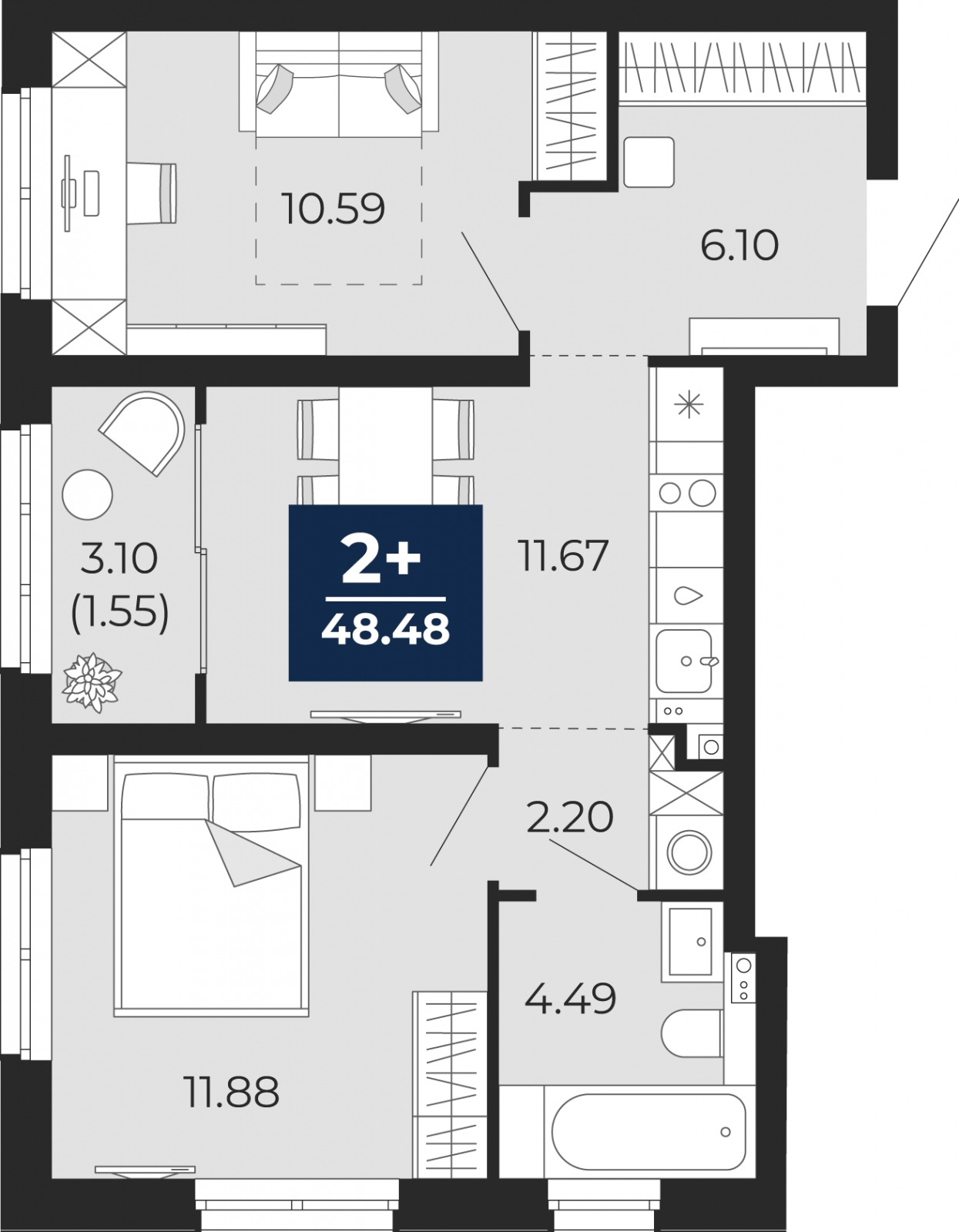 Двухкомнатная квартира от застройщика в ЖК "Беринг" на 10 этаже. Квартира без отделки, полностью готова к ремонту. Общая площадь: 48.48 кв.м., жилая: 22.47 кв.м., площадь просторной кухни-столовой: 11.67 кв.м. Угловая квартира, идеально подойдет любителям тишины и панорамных видов. В квартире одна лоджия, один совмещенный санузел. Высота потолков 2.75 м. Дом монолитный, многоподъездный, переменной этажности, от 9 до 21 этажей. Квартира находится во 2-й секции высотой 17 этажей в корпусе ГП-74. На этаже 7 квартир. В подъезде 1 пассажирский и 1 грузовой лифт. Окончание строительства - 4 квартал 2025 года. Оформление сделки по договору долевого участия. Подобно знаменитому исследователю, мы чувствуем себя первооткрывателями этой локации. Хотим показать новую суть места, сформировать для вас жизненный опыт, которого ещё не было. Беринг — район зелёного цвета. Беринг — район, который откроется вам с другой стороны. Впечатлит новым уровнем комфорта и качеством жизни. Беринг — открытие на карте города. Первый квартал расположен в районе Тура, в границах улиц: Камчатская – Западносибирская – Энтузиастов. Вокруг уже есть всё для того, чтобы ежедневная рутина была лишь частью жизни и не доставляла дискомфорта. Школы и детские сады, магазины и аптеки, поликлиника, места для семейного отдыха, пеших и велопрогулок, и даже рыбалки. Масштабное озеленение дворов — визитная карточка ЭНКО и ваш оазис спокойствия, чтобы отвлечься от повседневности. Раскидистые деревья, кустарники, травы и цветы — осталось остановиться, вдохнуть и расслабиться, глядя на эту природную красоту. Стилистика подъездов продолжает концепцию Беринга, вдохновлённого Камчаткой: сдержанный, но при этом впечатляющий дизайн соседствует с удобством и функциональностью. (AQID02315869)