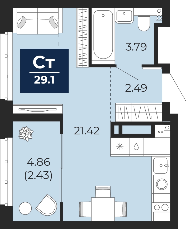 Просторная 1-комн. квартира-студия с предчистовой отделкой в ЖК "Беринг" на 14 этаже. Общая площадь: 29.1 кв.м., площадь гостиной 21.42 кв.м., из которых 5 кв.м. выделено под кухонную зону. Все окна выходят на одну сторону. В квартире одна лоджия, один совмещенный санузел. Высота потолков 2.75 м. Дом монолитный, многоподъездный, переменной этажности, от 9 до 22 этажей. Квартира находится в 73.2-й секции высотой 22 этажа в корпусе ГП-73. На этаже 7 квартир. В подъезде 1 пассажирский и 1 грузовой лифт. Окончание строительства - 4 квартал 2025 года. Оформление сделки по договору долевого участия. Подобно знаменитому исследователю, мы чувствуем себя первооткрывателями этой локации. Хотим показать новую суть места, сформировать для вас жизненный опыт, которого ещё не было. Беринг — район зелёного цвета. Беринг — район, который откроется вам с другой стороны. Впечатлит новым уровнем комфорта и качеством жизни. Беринг — открытие на карте города. Первый квартал расположен в районе Тура, в границах улиц: Камчатская – Западносибирская – Энтузиастов. Вокруг уже есть всё для того, чтобы ежедневная рутина была лишь частью жизни и не доставляла дискомфорта. Школы и детские сады, магазины и аптеки, поликлиника, места для семейного отдыха, пеших и велопрогулок, и даже рыбалки. Масштабное озеленение дворов — визитная карточка ЭНКО и ваш оазис спокойствия, чтобы отвлечься от повседневности. Раскидистые деревья, кустарники, травы и цветы — осталось остановиться, вдохнуть и расслабиться, глядя на эту природную красоту. Стилистика подъездов продолжает концепцию Беринга, вдохновлённого Камчаткой: сдержанный, но при этом впечатляющий дизайн соседствует с удобством и функциональностью. (AQID02315406)