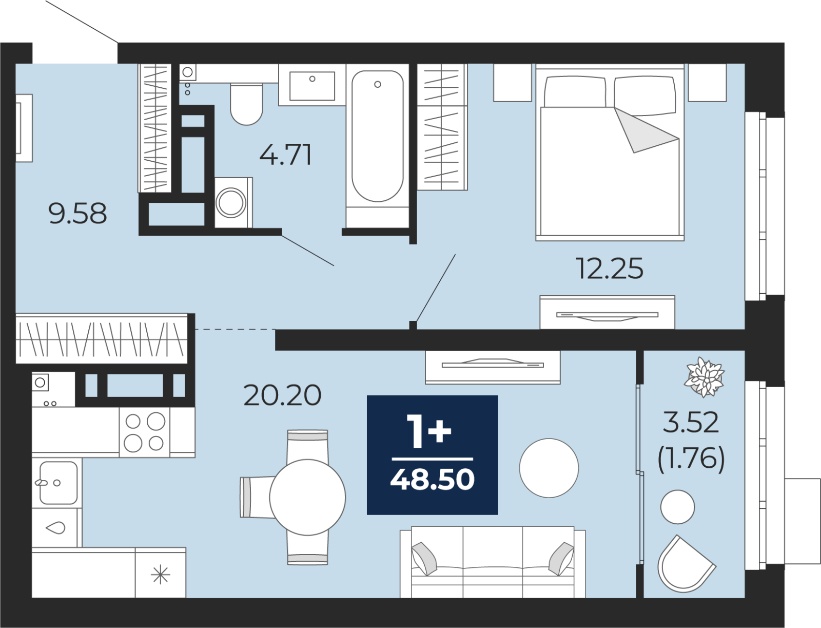 1-комн. квартира с предчистовой отделкой в ЖК "Прео" на 13 этаже. Общая площадь: 48.5 кв.м., жилая: 12.25 кв.м., площадь просторной кухни-столовой: 20.2 кв.м. Все окна выходят на одну сторону. В квартире одна лоджия, один совмещенный санузел. Высота потолков 2.7 м. Дом монолитный, трехподъездный, переменной этажности, от 14 до 23 этажей. Квартира находится в 1-й секции высотой 23 этажа в корпусе 206. На этаже 8 квартир. В подъезде 1 пассажирский и 1 грузовой лифт. Окончание строительства - 1 квартал 2026 года. Оформление сделки по договору долевого участия. Преображенский — один из самых привлекательных районов для жизни! Это полностью самостоятельный жилой район с точки зрения инфраструктуры. Преображенский находится между Московским и Червишевским трактами в квартале улиц Закалужская — Вьюжная — Александра Протозанова. Не нужно ждать, когда появится инфраструктура — переезжайте на всё готовое. Вблизи расположены действующие школа и детский сад. В этом году откроется еще один сад, а в следующем году — школа. По соседству с Преображенским запланировано строительство городского парка «Комарово» площадью 38 гектар. За 10 минут можно доехать на автомобиле до крупных ТРЦ: «Лента», «Кристалл», «Леруа Мерлен», «Метро» и «Ашан». С 2018 года в районе открыт Соседский центр — пространство, созданное для формирования добрососедской среды, совместного досуга, общения и реализации соседских инициатив. Здесь проходят встречи соседей, а также сами жители района организовывают мероприятия. Организатором такого события может стать любой желающий. В квартирах выполнена качественная предчистовая отделка. Гладкие стены с финишным выравниванием по маякам. Ровный потолок для установки натяжного потолка. Установлены пятикамерные окна с двойным стеклопакетом (3 стекла). Дизайнерские холлы с видеонаблюдением, безбарьерным и прозрачным входом – всегда светло и спокойно. На первом этаже есть просторные колясочные, где все жители могут оставлять свои коляски и велосипеды. В Преображенском есть всё, что нужно для активного отдыха и занятий спортом. Мы сделали большое футбольное поле с безопасным покрытием. Также установили хоккейный корт, который оборудован по всем необходимым стандартам. Во дворах можно делать упражнения на специальных площадках с турниками. Весь район мы обустроили велодорожками, которые связаны в единый маршрут. У нас есть сухие фонтаны, бьющие из земли, деревья, веревки, сетки, скалодром, газон, песок и резинка — осталось просто дать своему ребенку право на свободную игру. По-настоящему хорошие дворы — это те, которые дети предпочитают соцсетям и телевизору. Аккредитация в банках: ПАО «Газпромбанк», ПАО Банк «ВТБ», «Сбербанк России», ПАО «Банк Уралсиб», ОАО «Альфа-Банк» и других. (AQID02392053)