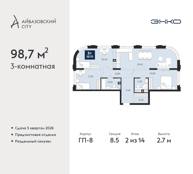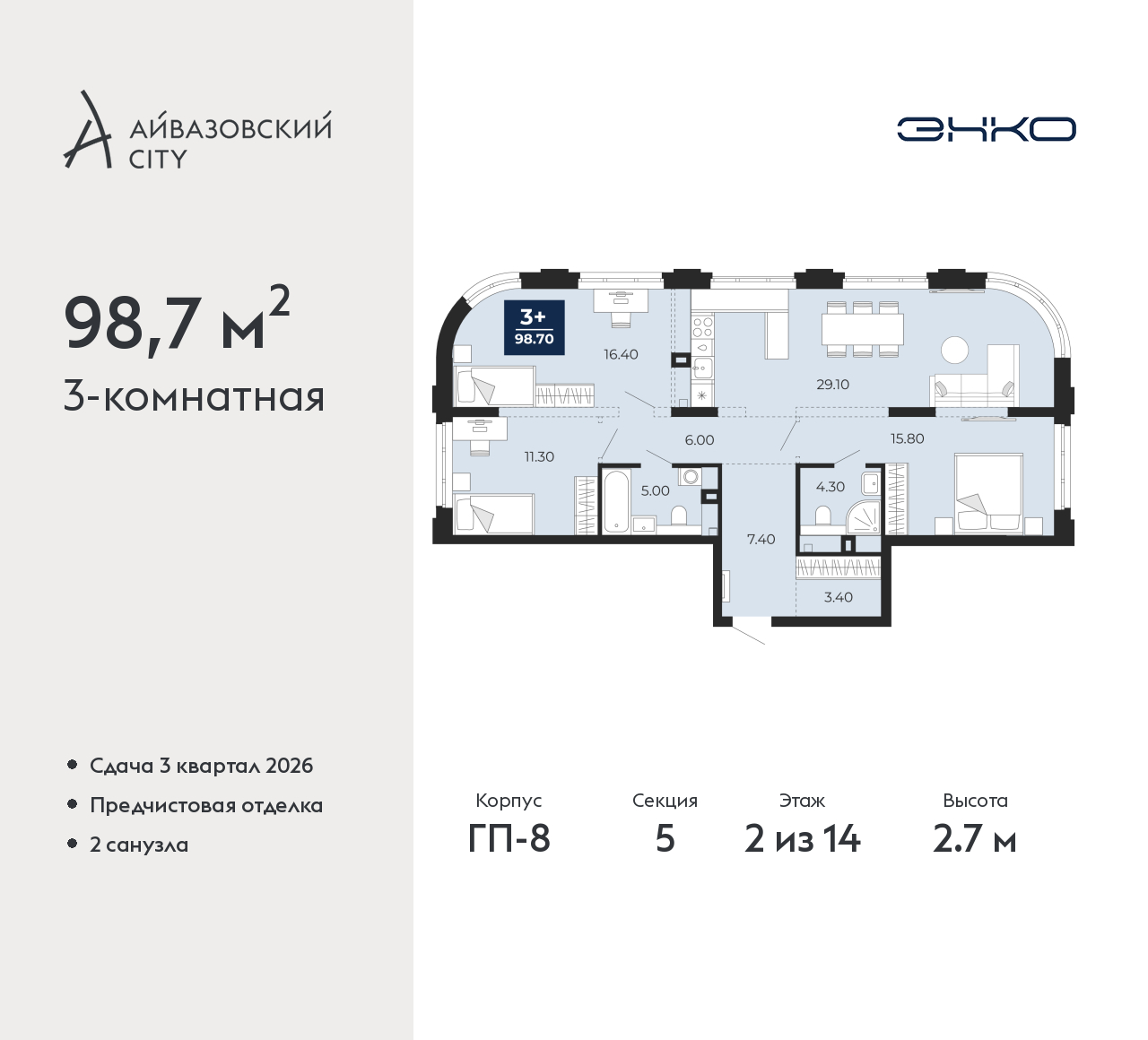 - Общая площадь 98.7 м²