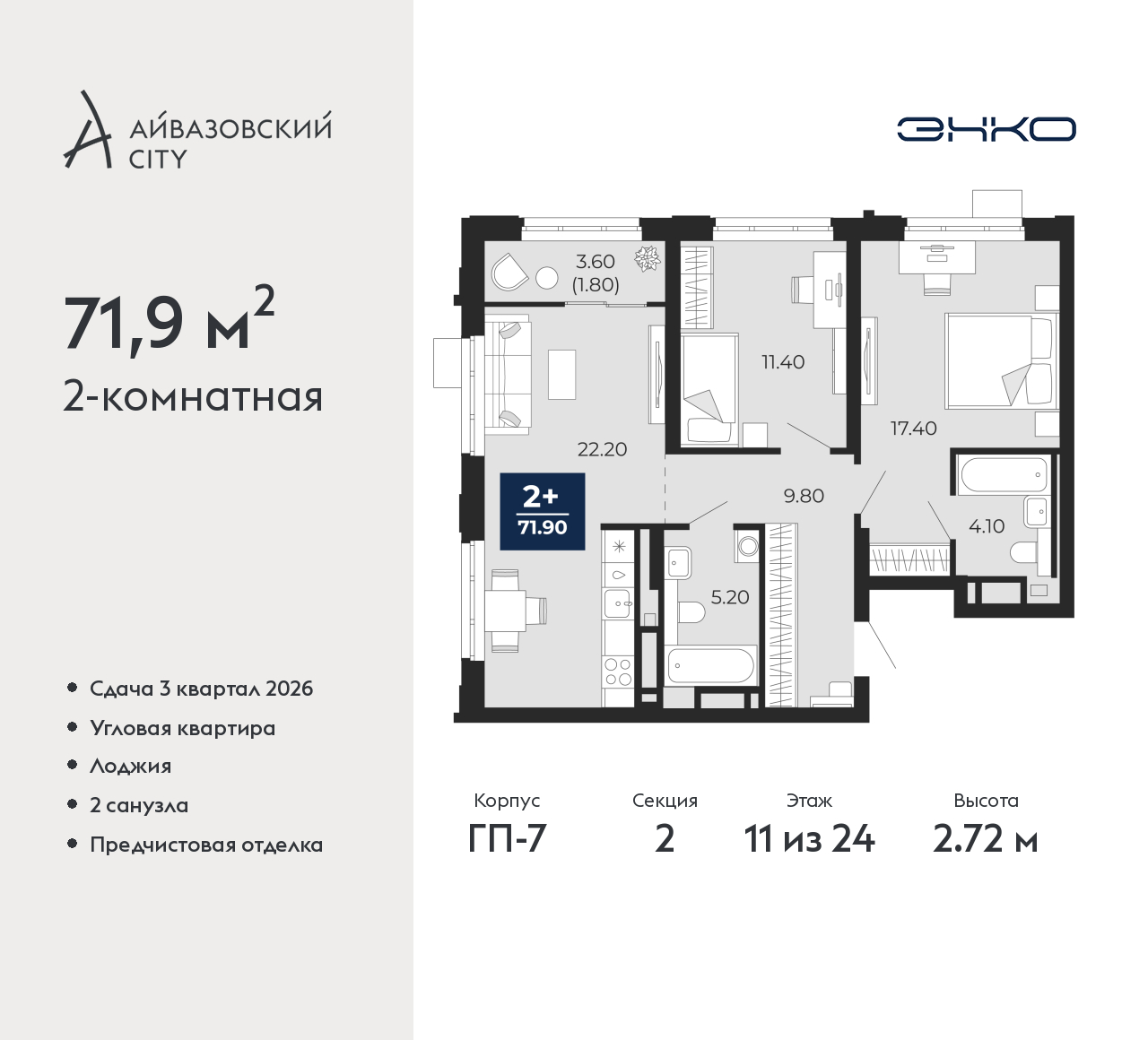 - Общая площадь 71.9 м²