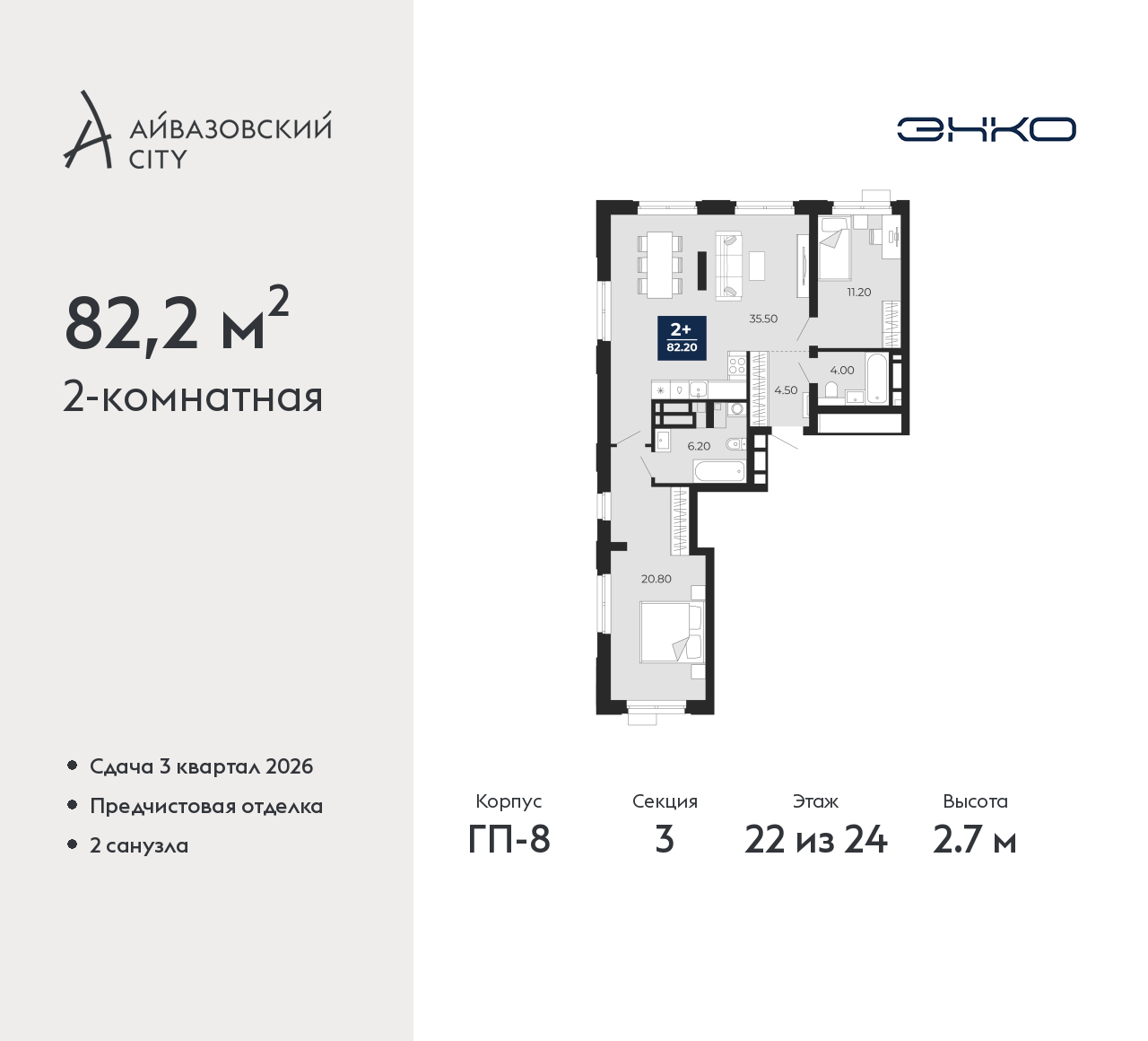 Продается 2-комн. квартира от застройщика с предчистовой отделкой в ЖК "Айвазовский City" на 22 этаже. Общая площадь: 82.2 кв.м., жилая: 32 кв.м., площадь просторной кухни-столовой: 35.5 кв.м. Квартира без проходных комнат, окна выходят нa три cтopoны дома. В квартире два совмещенных санузла. Высота потолков 2.7 м. Дом монолитный, многоподъездный, переменной этажности, от 14 до 24 этажей. Квартира находится в 3-й секции высотой 24 этажа в корпусе ГП-8. На этаже 7 квартир. В подъезде 1 пассажирский и 1 грузовой лифт. Окончание строительства - 3 квартал 2026 года. Оформление сделки по договору долевого участия. Новый жилой район располагается в живописном месте на берегу Туры в центральной части города. Принципиально новое пространство для жизни в центре современного города для тех, чьи мечты сбываются, кто нацелен на постоянный рост, перемены к лучшему для себя и своих близких. Каждая деталь Айвазовский City вдохновляет и заряжает на новые свершения: авторская архитектура, сбалансированная продуманная инфраструктура, дизайнерские дворы со спортивными и детскими площадками, парковые зоны с фонтанами, водный канал, украшающий центральный прогулочный маршрут района и многое другое. В 2019 года проект стал лауреатом престижной премии Urban Awards 2019 в номинации «Лучший строящийся региональный жилой комплекс бизнес-класса». Главная особенность Айвазовский City - соседство разных архитектурных школ в рамках одного дома. Изысканная классика, выразительная эклектика и оригинальный модерн - жить в одном из таких домов настоящий повод для гордости. Айвазовский City это идеальное сочетание комфорта, технологий и развитой инфраструктуры. Вход в подъезд возможен с улицы и со двора. Отправляясь на работу или за покупками, жители могут выйти с внешней стороны дома, а для прогулки с ребенком – со стороны двора. Экологически чистые материалы и энергосберегающие технологии, качественное освещение общественных зон, видеонаблюдение по всей территории жилого района (в том числе в подъездах, лифтах и в подземном паркинге), закрытые дворы с доступом только для жителей Айвазовский City. Часть домов в Айвазовский City будут оснащены подземным паркингом. Востребованный в нашем климатическом поясе формат хранения автомобилей защитит собственность владельца в любое время года. Аккредитация в банках: ОАО «Альфа-Банк», «Сбербанк России», ПАО «Газпромбанк», ПАО Банк «ВТБ», ПАО «Промсвязьбанк» и других. (AQID02459865)