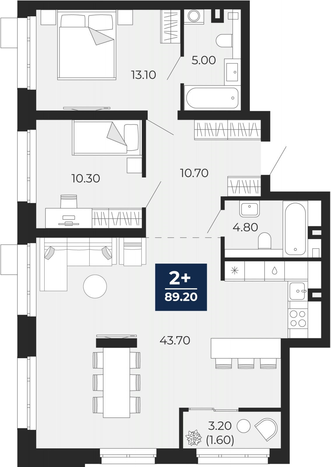 Продается 2-комн. квартира от застройщика с предчистовой отделкой в ЖК "Айвазовский City" на 2 этаже. Общая площадь: 89.2 кв.м., жилая: 23.4 кв.м., площадь просторной кухни-столовой: 43.7 кв.м. Угловая квартира, очень светлая, естественная вентиляция при открытии окон. В квартире одна лоджия, два совмещенных санузла. Высота потолков 2.72 м. Дом монолитный, многоподъездный, переменной этажности, от 9 до 24 этажей. Квартира находится во 2-й секции высотой 24 этажа в корпусе ГП-7. На этаже 7 квартир. В подъезде 1 пассажирский и 2 грузовых лифта. Окончание строительства - 3 квартал 2026 года. Оформление сделки по договору долевого участия. Новый жилой район располагается в живописном месте на берегу Туры в центральной части города. Принципиально новое пространство для жизни в центре современного города для тех, чьи мечты сбываются, кто нацелен на постоянный рост, перемены к лучшему для себя и своих близких. Каждая деталь Айвазовский City вдохновляет и заряжает на новые свершения: авторская архитектура, сбалансированная продуманная инфраструктура, дизайнерские дворы со спортивными и детскими площадками, парковые зоны с фонтанами, водный канал, украшающий центральный прогулочный маршрут района и многое другое. В 2019 года проект стал лауреатом престижной премии Urban Awards 2019 в номинации «Лучший строящийся региональный жилой комплекс бизнес-класса». Главная особенность Айвазовский City - соседство разных архитектурных школ в рамках одного дома. Изысканная классика, выразительная эклектика и оригинальный модерн - жить в одном из таких домов настоящий повод для гордости. Айвазовский City это идеальное сочетание комфорта, технологий и развитой инфраструктуры. Вход в подъезд возможен с улицы и со двора. Отправляясь на работу или за покупками, жители могут выйти с внешней стороны дома, а для прогулки с ребенком – со стороны двора. Экологически чистые материалы и энергосберегающие технологии, качественное освещение общественных зон, видеонаблюдение по всей территории жилого района (в том числе в подъездах, лифтах и в подземном паркинге), закрытые дворы с доступом только для жителей Айвазовский City. Часть домов в Айвазовский City будут оснащены подземным паркингом. Востребованный в нашем климатическом поясе формат хранения автомобилей защитит собственность владельца в любое время года. Аккредитация в банках: ОАО «Альфа-Банк», ПАО Банк «ВТБ», ПАО «Газпромбанк», «Сбербанк России», АО "ДОМ.РФ" и других. (AQID02483617)