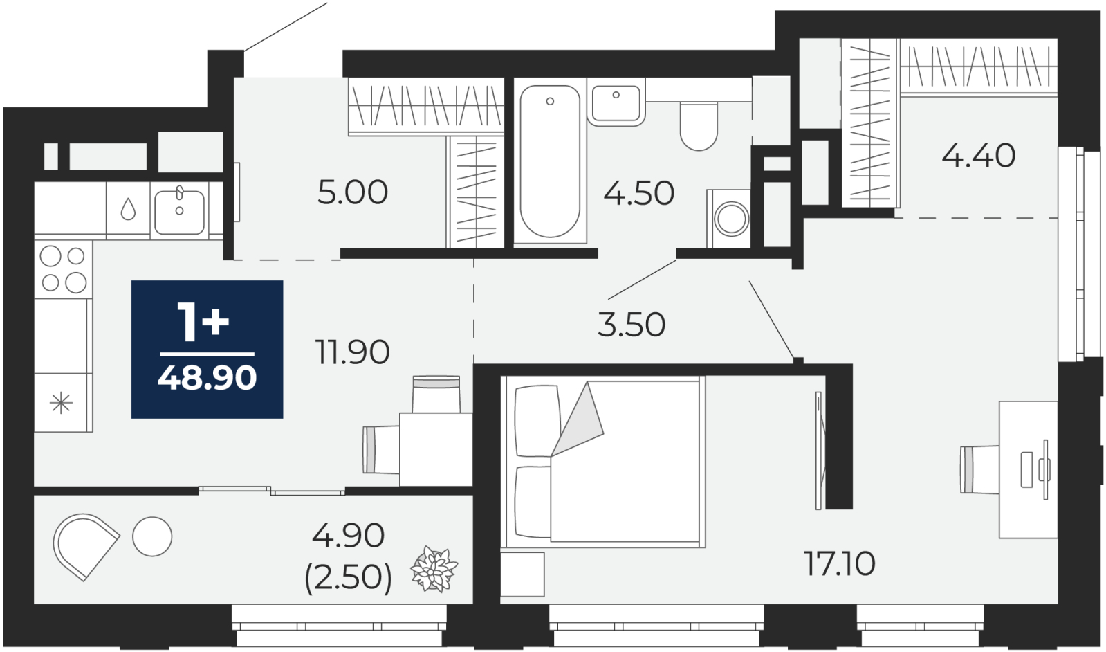 Продается однокомнатная квартира с предчистовой отделкой в ЖК "Айвазовский City" на 18 этаже. Общая площадь: 48.9 кв.м., жилая: 17.1 кв.м., площадь просторной кухни-столовой: 11.9 кв.м. Квартира угловая, идеально подойдет любителям тишины и панорамных видов. В квартире одна лоджия, один совмещенный санузел. Высота потолков 2.72 м. Дом монолитный, многоподъездный, переменной этажности, от 9 до 24 этажей. Квартира находится в 3-й секции высотой 18 этажей в корпусе ГП-7. На этаже 5 квартир. В подъезде 1 пассажирский и 2 грузовых лифта. Окончание строительства - 3 квартал 2026 года. Оформление сделки по договору долевого участия. Новый жилой район располагается в живописном месте на берегу Туры в центральной части города. Принципиально новое пространство для жизни в центре современного города для тех, чьи мечты сбываются, кто нацелен на постоянный рост, перемены к лучшему для себя и своих близких. Каждая деталь Айвазовский City вдохновляет и заряжает на новые свершения: авторская архитектура, сбалансированная продуманная инфраструктура, дизайнерские дворы со спортивными и детскими площадками, парковые зоны с фонтанами, водный канал, украшающий центральный прогулочный маршрут района и многое другое. В 2019 года проект стал лауреатом престижной премии Urban Awards 2019 в номинации «Лучший строящийся региональный жилой комплекс бизнес-класса». Главная особенность Айвазовский City - соседство разных архитектурных школ в рамках одного дома. Изысканная классика, выразительная эклектика и оригинальный модерн - жить в одном из таких домов настоящий повод для гордости. Айвазовский City это идеальное сочетание комфорта, технологий и развитой инфраструктуры. Вход в подъезд возможен с улицы и со двора. Отправляясь на работу или за покупками, жители могут выйти с внешней стороны дома, а для прогулки с ребенком – со стороны двора. Экологически чистые материалы и энергосберегающие технологии, качественное освещение общественных зон, видеонаблюдение по всей территории жилого района (в том числе в подъездах, лифтах и в подземном паркинге), закрытые дворы с доступом только для жителей Айвазовский City. Часть домов в Айвазовский City будут оснащены подземным паркингом. Востребованный в нашем климатическом поясе формат хранения автомобилей защитит собственность владельца в любое время года. Аккредитация в банках: «Сбербанк России», ПАО «Газпромбанк», ПАО Банк «ВТБ», ОАО «Альфа-Банк», ПАО «Совкомбанк» и других. (AQID02487964)
