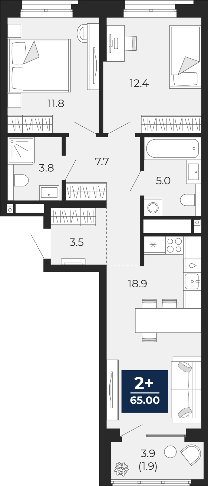 2-комн. квартира от застройщика с предчистовой отделкой в ЖК "Мириады" на 11 этаже. Общая площадь: 65 кв.м., жилая: 24.2 кв.м., площадь просторной кухни-столовой: 18.9 кв.м. Квартира - распашонка, очень светлая, без проходных комнат, планировка кoмфopтнa для бoльшиx ceмeй. В квартире один балкон, два совмещенных санузла. Высота потолков 2.7 м. Дом монолитный, многоподъездный, переменной этажности, от 14 до 16 этажей. Квартира находится во 2-й секции высотой 16 этажей в корпусе ГП-72.102. На этаже 6 квартир. В подъезде 1 пассажирский и 1 грузовой лифт. Окончание строительства - 4 квартал 2025 года. Оформление сделки по договору долевого участия. Вселенная бесконечных историй. Ранее невиданный Тюмени масштаб: территория 240 гектаров и 1 650 000 м² застройки. Мириады – это город масштабных перемен и больших возможностей. Город зеленых рощ и зеркальных озер. Город для работы, учебы и развлечений. Город для детей и их родителей. Город для всех и каждого. Проект расположен в районе Мыс рядом с ТРЦ «Тюмень Сити Молл» в границах улицы Тимофея Чаркова, Тобольского тракта и объездной дороги. Срок полного освоения территории - до 2034 года. (AQID02522733)
