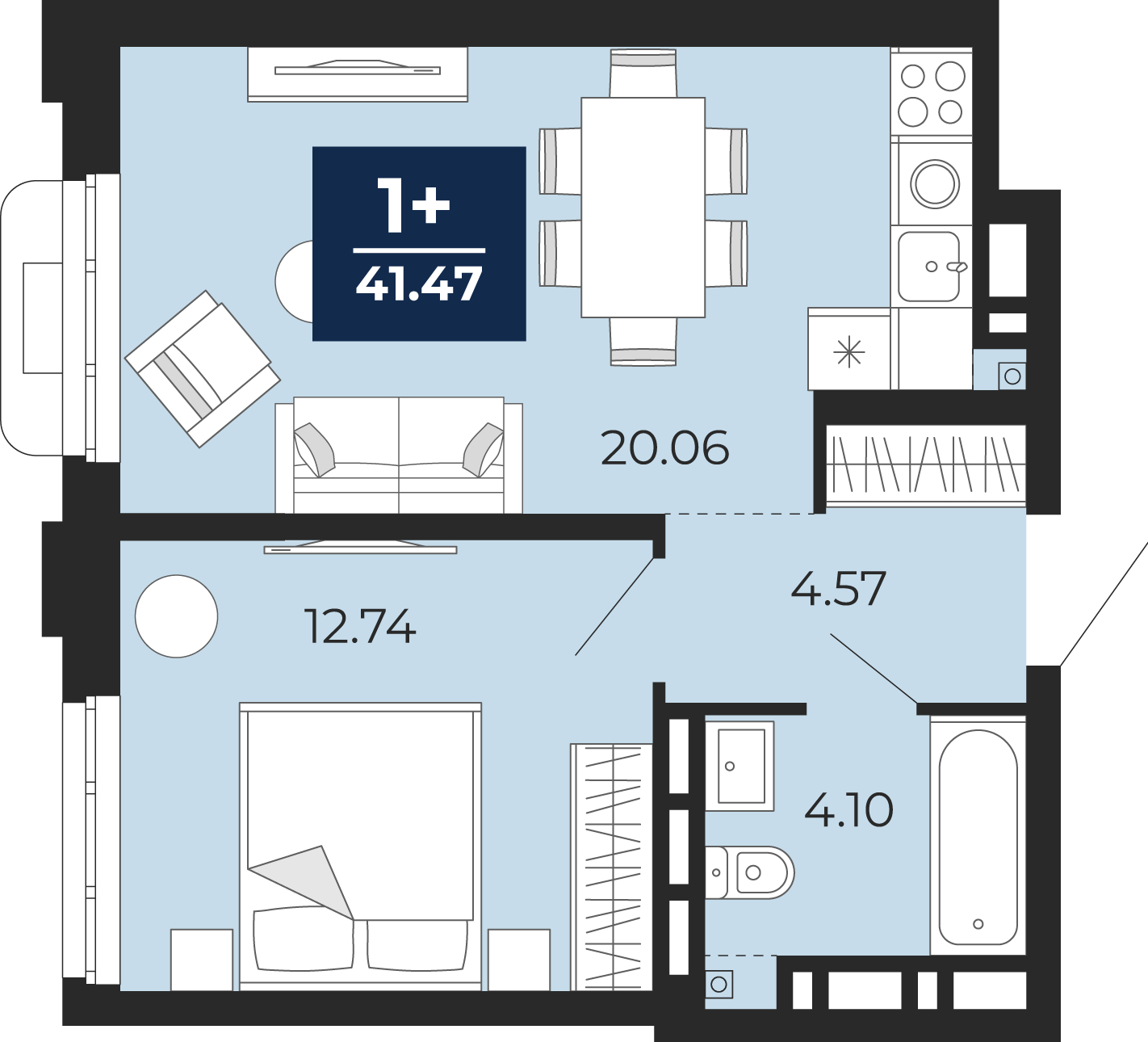 - Общая площадь 41.47 м²