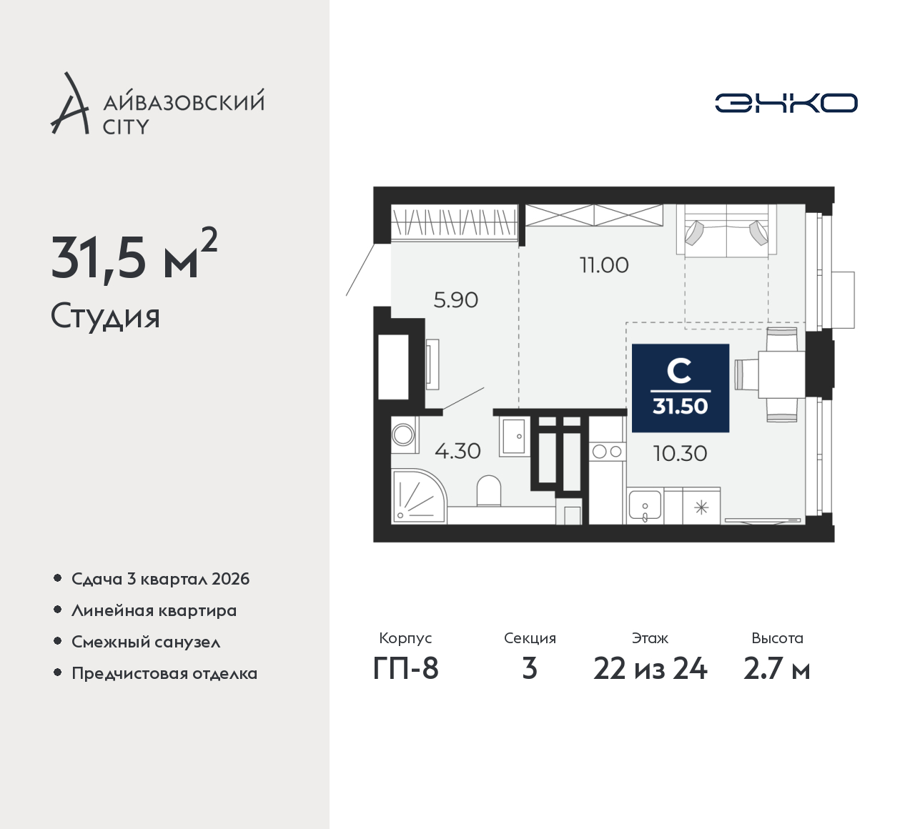 - Срок сдачи 3 квартал 2026 г.
