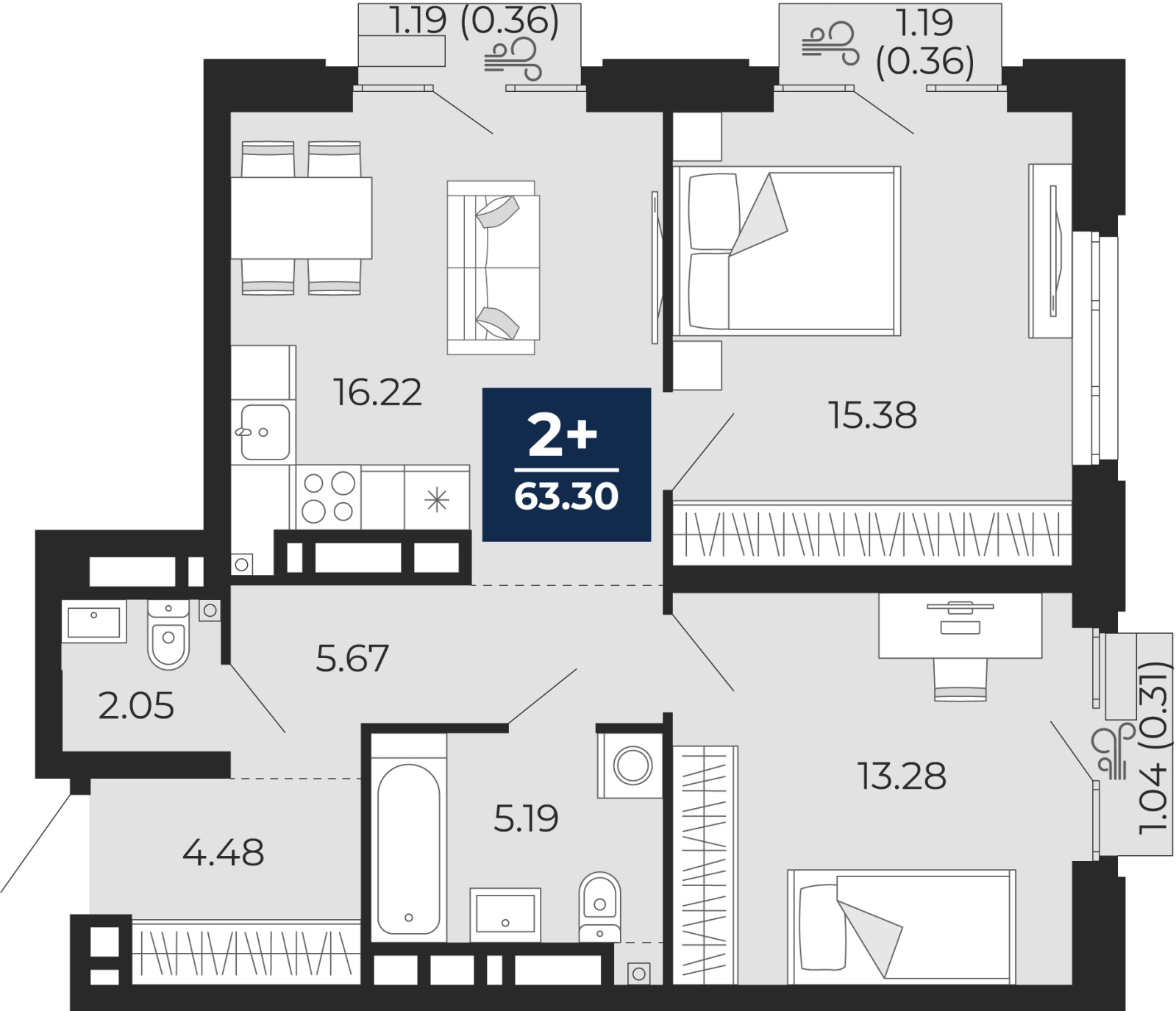 2-комн. квартира с предчистовой отделкой в ЖК "Айвазовский City" на 5 этаже. Общая площадь: 63.3 кв.м., жилая: 28.66 кв.м., площадь просторной кухни-столовой: 16.22 кв.м. Квартира угловая, идеально подойдет любителям тишины и панорамных видов. В квартире две лоджии, один совмещенный и один раздельный санузел. Высота потолков 2.7 м. Дом монолитный, многоподъездный, высотой 24 этажа. Квартира находится в 4-й секции в корпусе ГП-12. На этаже 5 квартир. В подъезде 1 пассажирский и 1 грузовой лифт. Окончание строительства - 4 квартал 2028 года. Оформление сделки по договору долевого участия. Новый жилой район располагается в живописном месте на берегу Туры в центральной части города. Принципиально новое пространство для жизни в центре современного города для тех, чьи мечты сбываются, кто нацелен на постоянный рост, перемены к лучшему для себя и своих близких. Каждая деталь Айвазовский City вдохновляет и заряжает на новые свершения: авторская архитектура, сбалансированная продуманная инфраструктура, дизайнерские дворы со спортивными и детскими площадками, парковые зоны с фонтанами, водный канал, украшающий центральный прогулочный маршрут района и многое другое. В 2019 года проект стал лауреатом престижной премии Urban Awards 2019 в номинации «Лучший строящийся региональный жилой комплекс бизнес-класса». Главная особенность Айвазовский City - соседство разных архитектурных школ в рамках одного дома. Изысканная классика, выразительная эклектика и оригинальный модерн - жить в одном из таких домов настоящий повод для гордости. Айвазовский City это идеальное сочетание комфорта, технологий и развитой инфраструктуры. Вход в подъезд возможен с улицы и со двора. Отправляясь на работу или за покупками, жители могут выйти с внешней стороны дома, а для прогулки с ребенком – со стороны двора. Экологически чистые материалы и энергосберегающие технологии, качественное освещение общественных зон, видеонаблюдение по всей территории жилого района (в том числе в подъездах, лифтах и в подземном паркинге), закрытые дворы с доступом только для жителей Айвазовский City. Часть домов в Айвазовский City будут оснащены подземным паркингом. Востребованный в нашем климатическом поясе формат хранения автомобилей защитит собственность владельца в любое время года. Аккредитация в банках: «Сбербанк России», ПАО Банк «ВТБ», ОАО «Альфа-Банк», ПАО «Газпромбанк», ПАО Банк «ФК Открытие» и других. (AQID02525685)