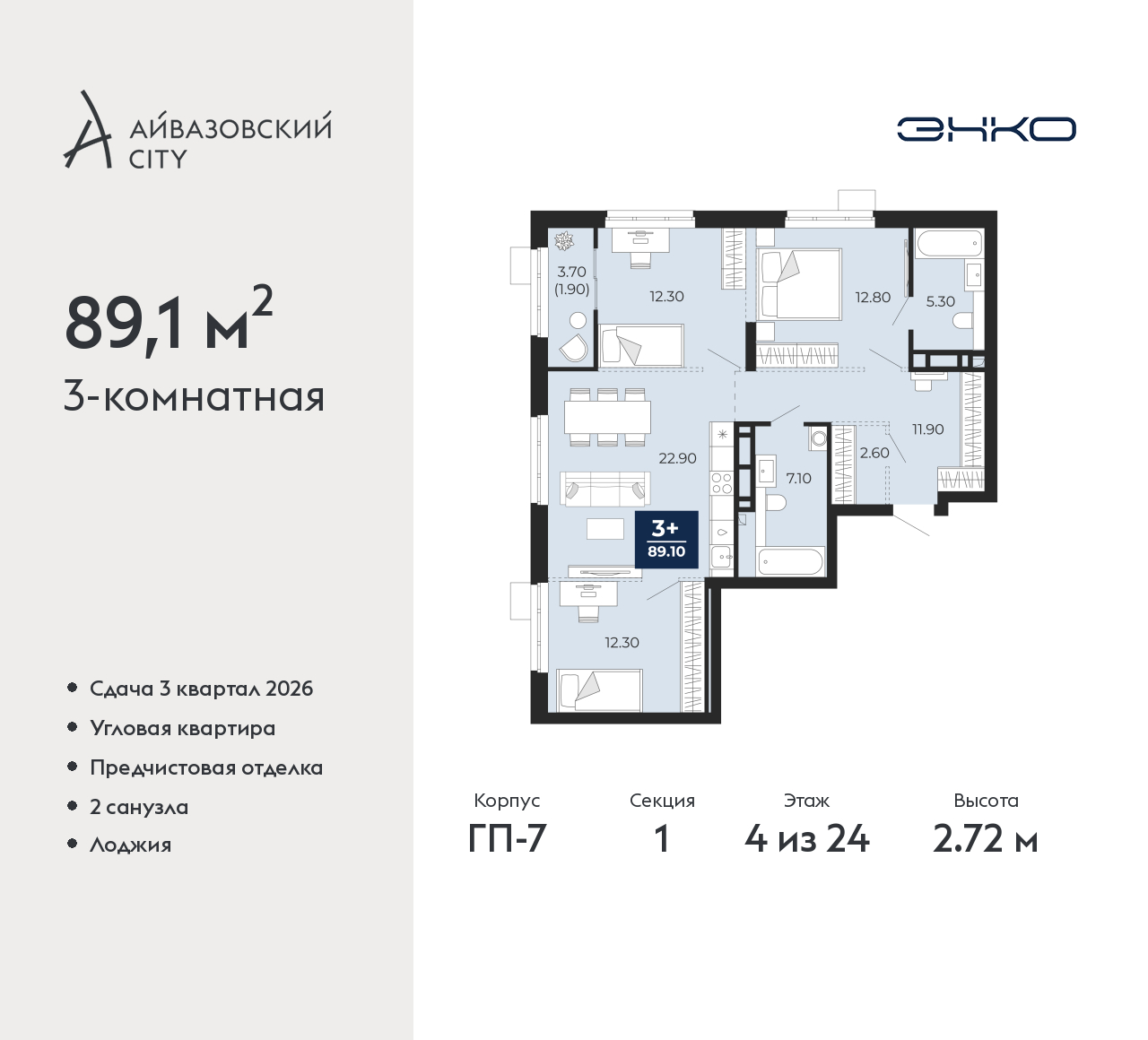 - Общая площадь 89.1 м²