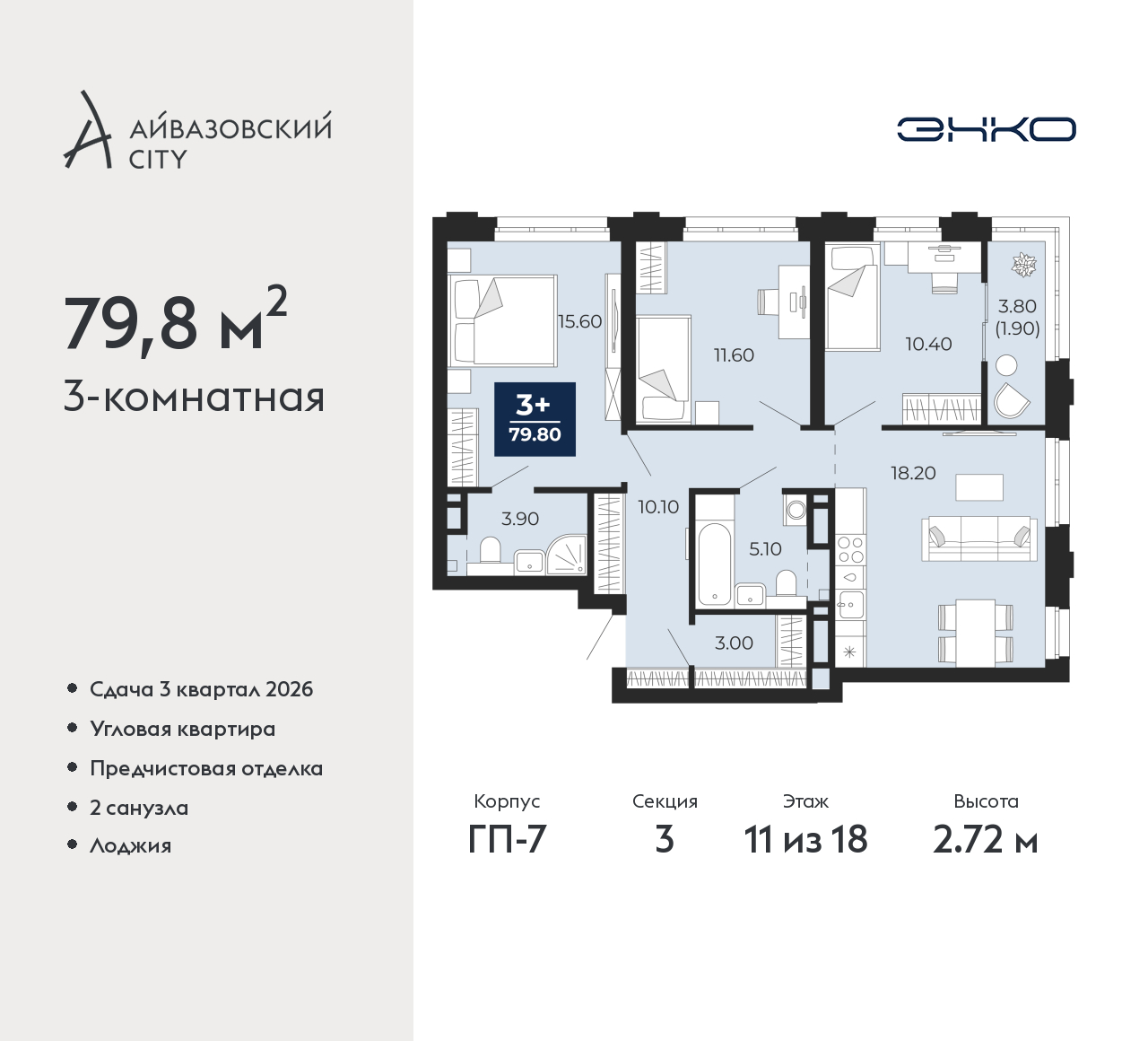 • Общая площадь 79.8 м²