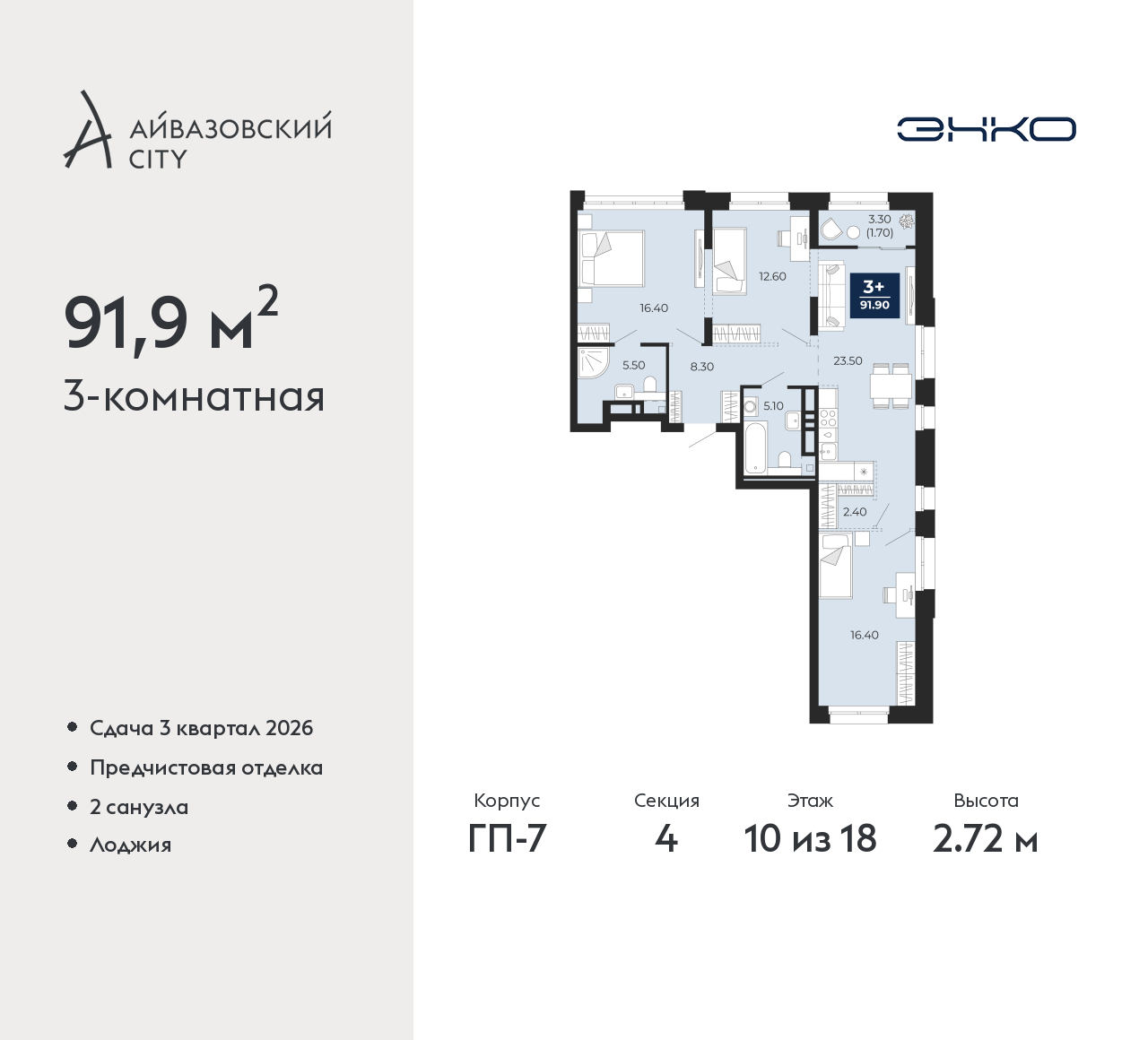 - Общая площадь 91.9 м²