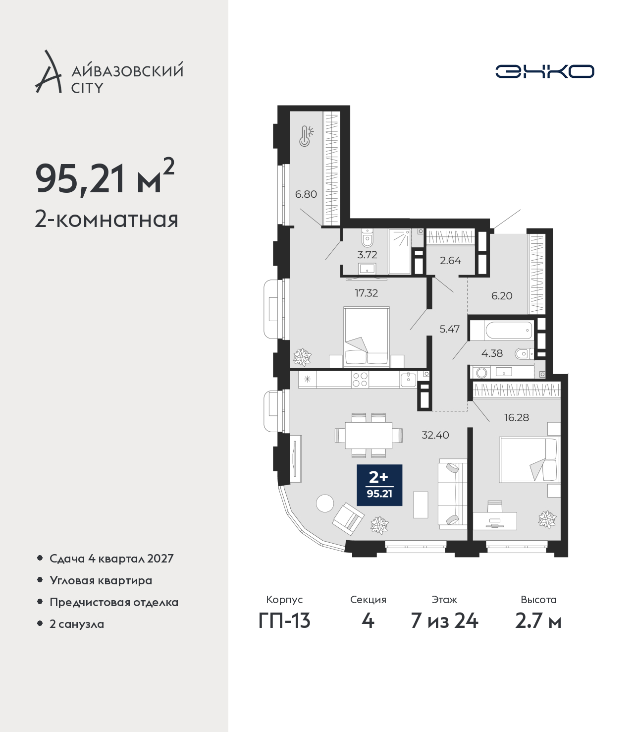 - Общая площадь 95.21 м²