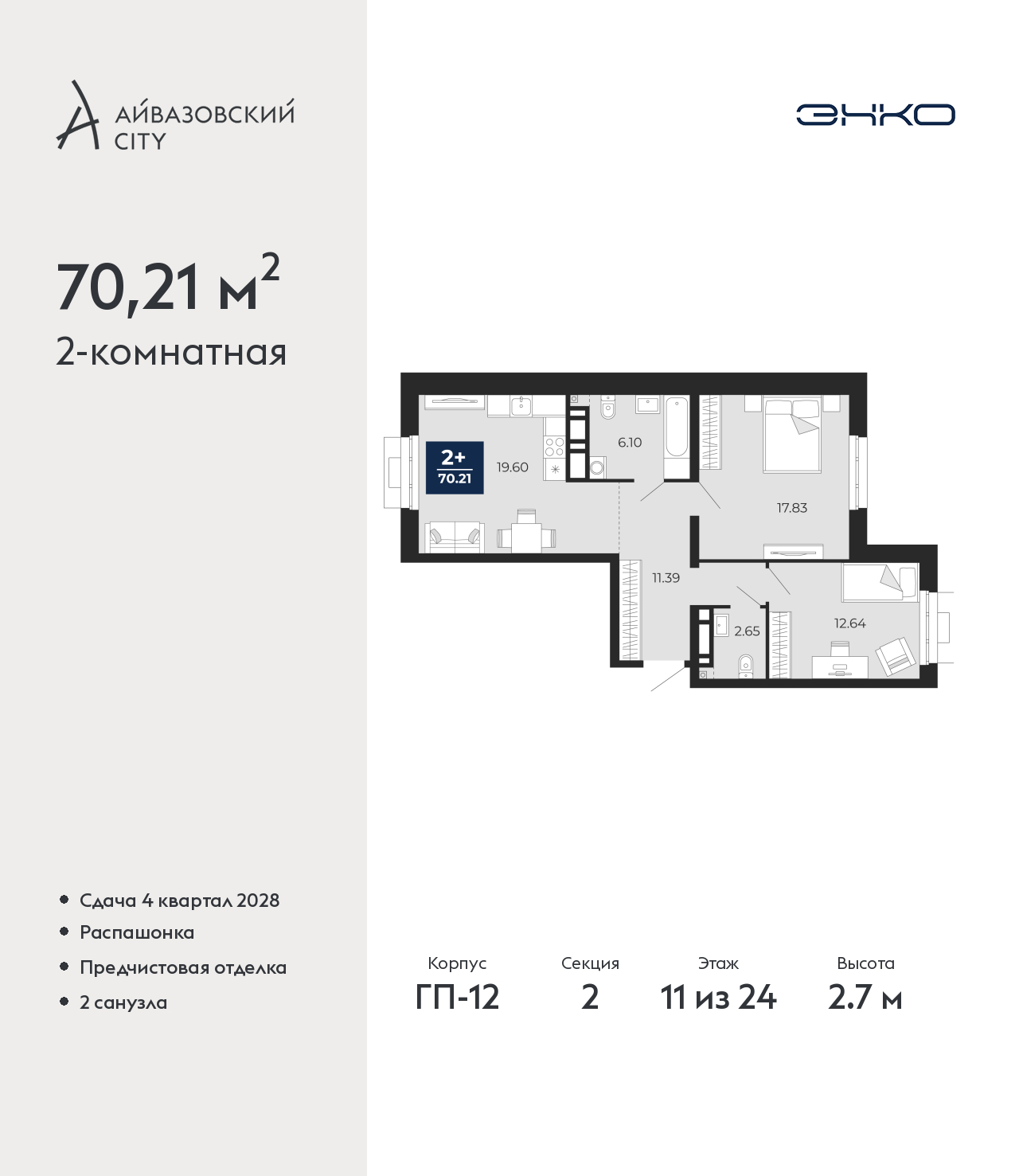 - Общая площадь 70.21 м²