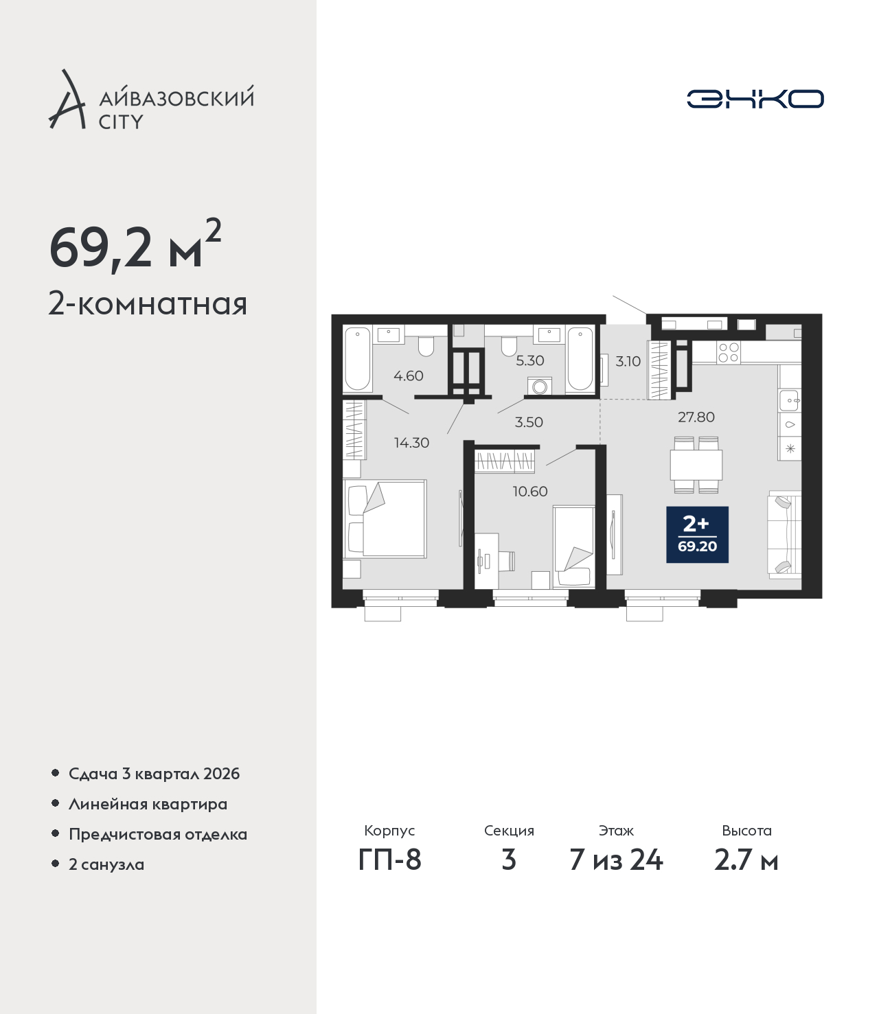 - Общая площадь 69.2 м²