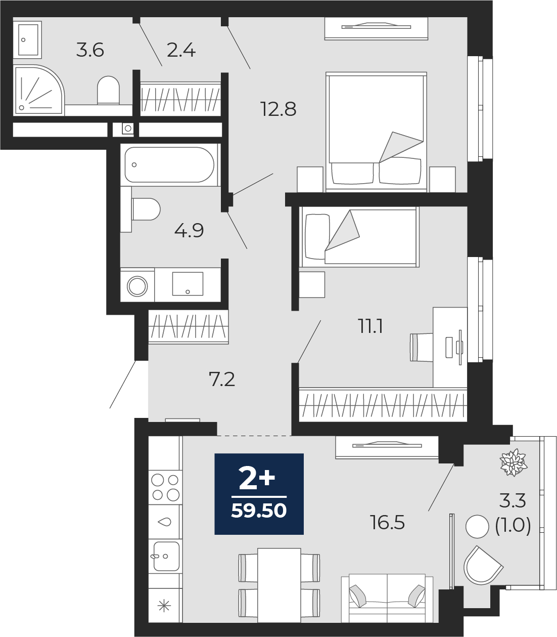 2-комн. квартира от застройщика с предчистовой отделкой в ЖК "Мириады" на 10 этаже. Общая площадь: 59.5 кв.м., жилая: 23.9 кв.м., площадь просторной кухни-столовой: 16.5 кв.м. Комнаты изолированные, все окна выходят на одну сторону. В квартире один балкон, два совмещенных санузла. Высота потолков 2.7 м. Дом монолитный, трехподъездный, переменной этажности, от 14 до 16 этажей. Квартира находится в 1-й секции высотой 16 этажей в корпусе ГП-72.103. На этаже 8 квартир. В подъезде 1 пассажирский и 1 грузовой лифт. Окончание строительства - 4 квартал 2025 года. Оформление сделки по договору долевого участия. Вселенная бесконечных историй. Ранее невиданный Тюмени масштаб: территория 240 гектаров и 1 650 000 м² застройки. Мириады – это город масштабных перемен и больших возможностей. Город зеленых рощ и зеркальных озер. Город для работы, учебы и развлечений. Город для детей и их родителей. Город для всех и каждого. Проект расположен в районе Мыс рядом с ТРЦ «Тюмень Сити Молл» в границах улицы Тимофея Чаркова, Тобольского тракта и объездной дороги. Срок полного освоения территории - до 2034 года. (AQID02536497)