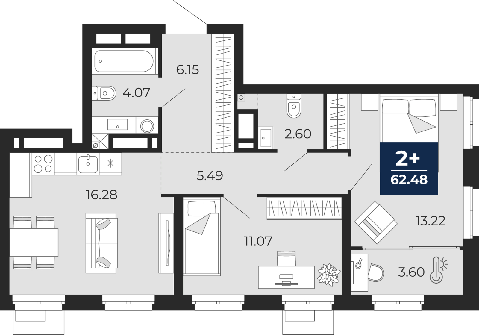 2-комн. квартира от застройщика с предчистовой отделкой в ЖК "Айвазовский City" на 6 этаже. Общая площадь: 62.48 кв.м., жилая: 24.29 кв.м., площадь просторной кухни-столовой: 16.28 кв.м. Квартира угловая, идеально подойдет любителям тишины и панорамных видов. В квартире одна лоджия, один совмещенный и один раздельный санузел. Высота потолков 2.7 м. Дом монолитный, многоподъездный, высотой 24 этажа. Квартира находится во 2-й секции в корпусе ГП-13. На этаже 6 квартир. В подъезде 1 пассажирский и 1 грузовой лифт. Окончание строительства - 4 квартал 2027 года. Оформление сделки по договору долевого участия. Новый жилой район располагается в живописном месте на берегу Туры в центральной части города. Принципиально новое пространство для жизни в центре современного города для тех, чьи мечты сбываются, кто нацелен на постоянный рост, перемены к лучшему для себя и своих близких. Каждая деталь Айвазовский City вдохновляет и заряжает на новые свершения: авторская архитектура, сбалансированная продуманная инфраструктура, дизайнерские дворы со спортивными и детскими площадками, парковые зоны с фонтанами, водный канал, украшающий центральный прогулочный маршрут района и многое другое. В 2019 года проект стал лауреатом престижной премии Urban Awards 2019 в номинации «Лучший строящийся региональный жилой комплекс бизнес-класса». Главная особенность Айвазовский City - соседство разных архитектурных школ в рамках одного дома. Изысканная классика, выразительная эклектика и оригинальный модерн - жить в одном из таких домов настоящий повод для гордости. Айвазовский City это идеальное сочетание комфорта, технологий и развитой инфраструктуры. Вход в подъезд возможен с улицы и со двора. Отправляясь на работу или за покупками, жители могут выйти с внешней стороны дома, а для прогулки с ребенком – со стороны двора. Экологически чистые материалы и энергосберегающие технологии, качественное освещение общественных зон, видеонаблюдение по всей территории жилого района (в том числе в подъездах, лифтах и в подземном паркинге), закрытые дворы с доступом только для жителей Айвазовский City. Часть домов в Айвазовский City будут оснащены подземным паркингом. Востребованный в нашем климатическом поясе формат хранения автомобилей защитит собственность владельца в любое время года. Аккредитация в банках: ПАО Банк «ВТБ», «Сбербанк России», ОАО «Альфа-Банк», ПАО «Газпромбанк», ПАО «Совкомбанк» и других. (AQID02536501)