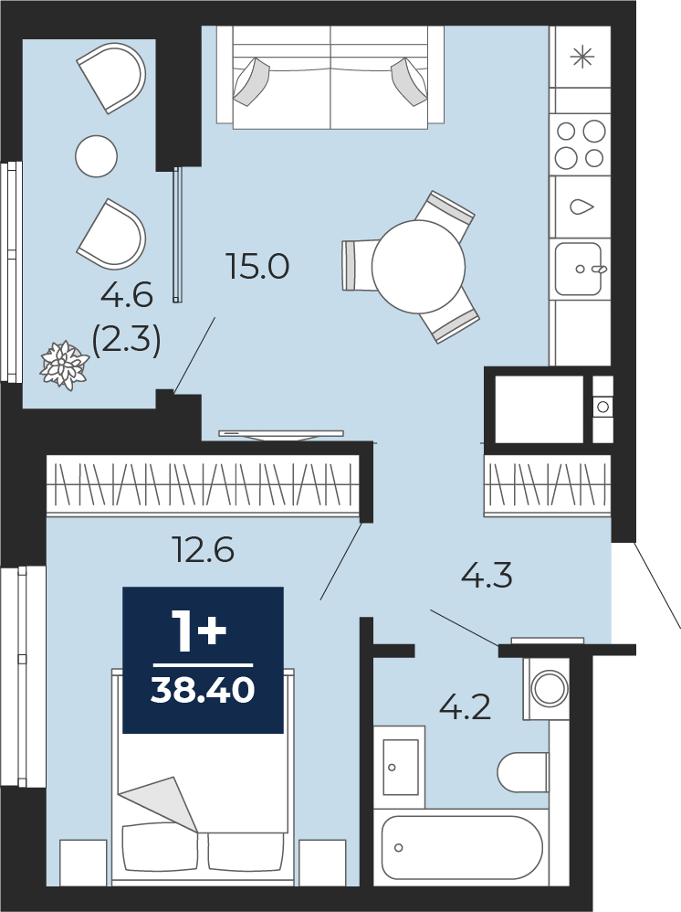 Однокомнатная квартира с предчистовой отделкой в ЖК "Мириады" на 20 этаже. Общая площадь: 38.4 кв.м., жилая: 12.6 кв.м., площадь просторной кухни-столовой: 15 кв.м. Все окна выходят на одну сторону. В квартире одна лоджия, один совмещенный санузел. Высота потолков 2.7 м. Квартира находится в корпусе ГП-72.101. Дом монолитный, одноподъездный, высотой 25 этажей. На этаже 8 квартир. В подъезде 2 пассажирских и 1 грузовой лифт. Окончание строительства - 4 квартал 2025 года. Оформление сделки по договору долевого участия. Вселенная бесконечных историй. Ранее невиданный Тюмени масштаб: территория 240 гектаров и 1 650 000 м² застройки. Мириады – это город масштабных перемен и больших возможностей. Город зеленых рощ и зеркальных озер. Город для работы, учебы и развлечений. Город для детей и их родителей. Город для всех и каждого. Проект расположен в районе Мыс рядом с ТРЦ «Тюмень Сити Молл» в границах улицы Тимофея Чаркова, Тобольского тракта и объездной дороги. Срок полного освоения территории - до 2034 года. (AQID02536527)