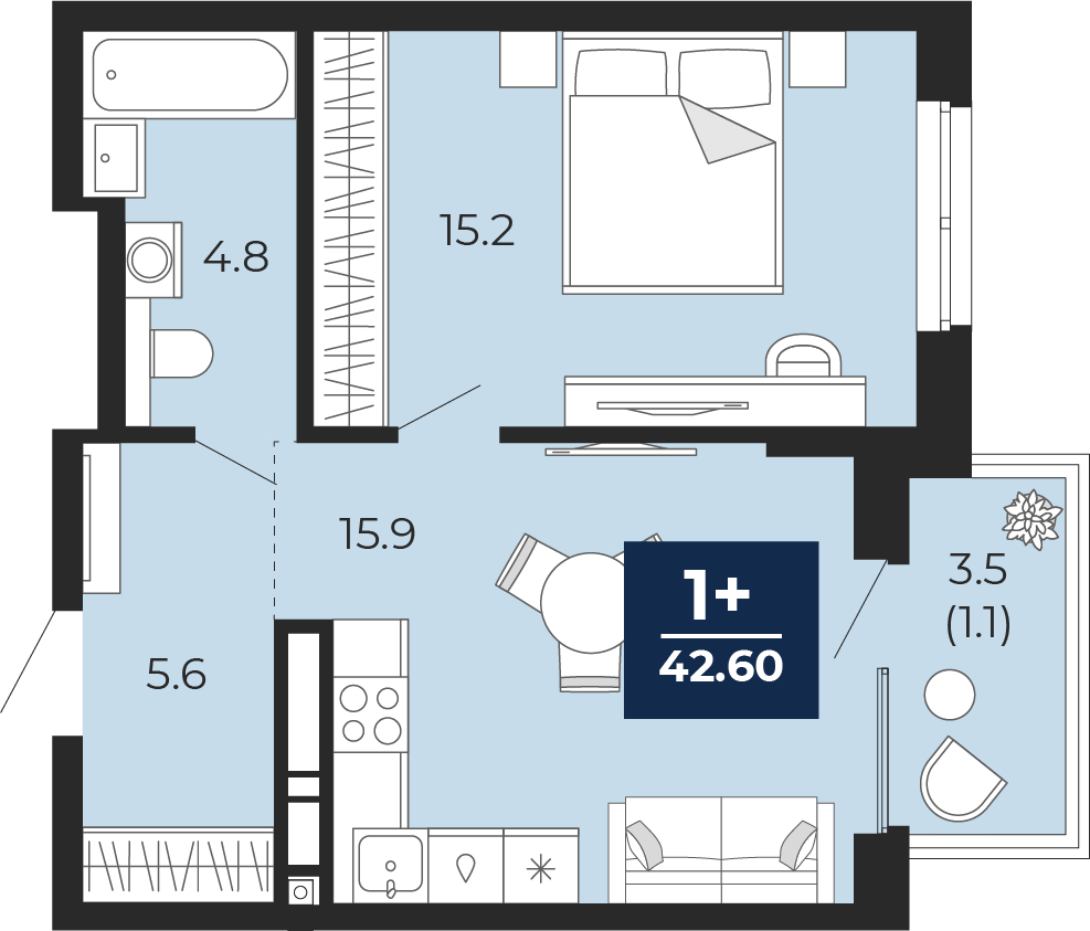 Продается 1-комн. квартира от застройщика с предчистовой отделкой в ЖК "Мириады" на 5 этаже. Общая площадь: 42.6 кв.м., жилая: 15.2 кв.м., площадь просторной кухни-столовой: 15.9 кв.м. Все окна выходят на одну сторону. В квартире один балкон, один совмещенный санузел. Высота потолков 2.7 м. Дом монолитный, двухподъездный, переменной этажности, от 14 до 18 этажей. Квартира находится во 2-й секции высотой 14 этажей в корпусе ГП-72.104. На этаже 8 квартир. В подъезде 1 пассажирский и 1 грузовой лифт. Окончание строительства - 4 квартал 2025 года. Оформление сделки по договору долевого участия. Вселенная бесконечных историй. Ранее невиданный Тюмени масштаб: территория 240 гектаров и 1 650 000 м² застройки. Мириады – это город масштабных перемен и больших возможностей. Город зеленых рощ и зеркальных озер. Город для работы, учебы и развлечений. Город для детей и их родителей. Город для всех и каждого. Проект расположен в районе Мыс рядом с ТРЦ «Тюмень Сити Молл» в границах улицы Тимофея Чаркова, Тобольского тракта и объездной дороги. Срок полного освоения территории - до 2034 года. (AQID02536596)