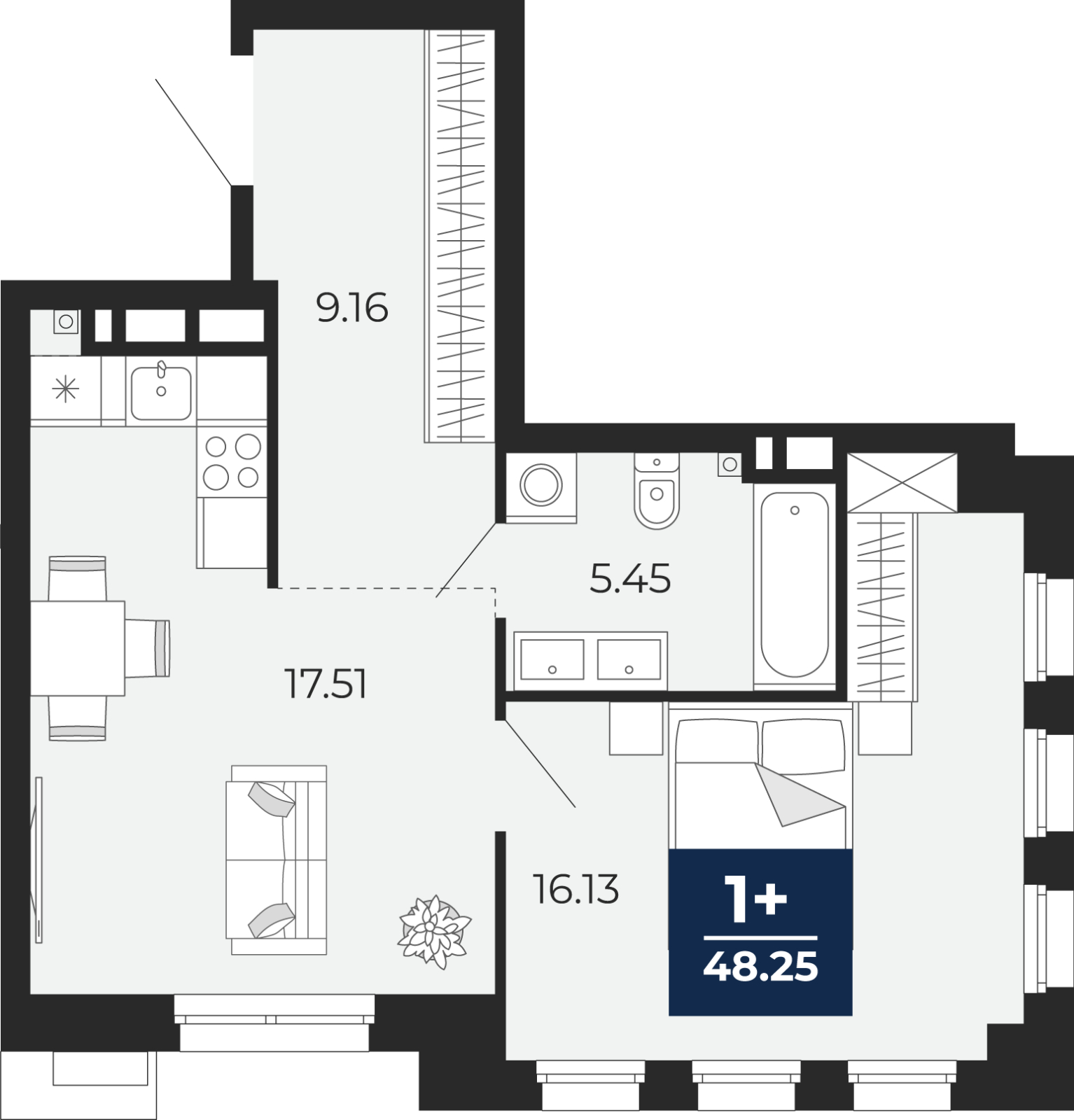 Однокомнатная квартира с предчистовой отделкой в ЖК "Айвазовский City" на 3 этаже. Общая площадь: 48.25 кв.м., жилая: 16.13 кв.м., площадь просторной кухни-столовой: 17.51 кв.м. Угловая квартира, идеально подойдет любителям тишины и панорамных видов. В квартире один совмещенный санузел. Высота потолков 2.7 м. Дом монолитный, многоподъездный, высотой 24 этажа. Квартира находится в 1-й секции в корпусе ГП-13. На этаже 2 квартиры. Окончание строительства - 4 квартал 2027 года. Оформление сделки по договору долевого участия. Новый жилой район располагается в живописном месте на берегу Туры в центральной части города. Принципиально новое пространство для жизни в центре современного города для тех, чьи мечты сбываются, кто нацелен на постоянный рост, перемены к лучшему для себя и своих близких. Каждая деталь Айвазовский City вдохновляет и заряжает на новые свершения: авторская архитектура, сбалансированная продуманная инфраструктура, дизайнерские дворы со спортивными и детскими площадками, парковые зоны с фонтанами, водный канал, украшающий центральный прогулочный маршрут района и многое другое. В 2019 года проект стал лауреатом престижной премии Urban Awards 2019 в номинации «Лучший строящийся региональный жилой комплекс бизнес-класса». Главная особенность Айвазовский City - соседство разных архитектурных школ в рамках одного дома. Изысканная классика, выразительная эклектика и оригинальный модерн - жить в одном из таких домов настоящий повод для гордости. Айвазовский City это идеальное сочетание комфорта, технологий и развитой инфраструктуры. Вход в подъезд возможен с улицы и со двора. Отправляясь на работу или за покупками, жители могут выйти с внешней стороны дома, а для прогулки с ребенком – со стороны двора. Экологически чистые материалы и энергосберегающие технологии, качественное освещение общественных зон, видеонаблюдение по всей территории жилого района (в том числе в подъездах, лифтах и в подземном паркинге), закрытые дворы с доступом только для жителей Айвазовский City. Часть домов в Айвазовский City будут оснащены подземным паркингом. Востребованный в нашем климатическом поясе формат хранения автомобилей защитит собственность владельца в любое время года. Аккредитация в банках: ОАО «Альфа-Банк», ПАО «Газпромбанк», «Сбербанк России», ПАО Банк «ВТБ», ПАО Банк «ФК Открытие» и других. (AQID02520687)