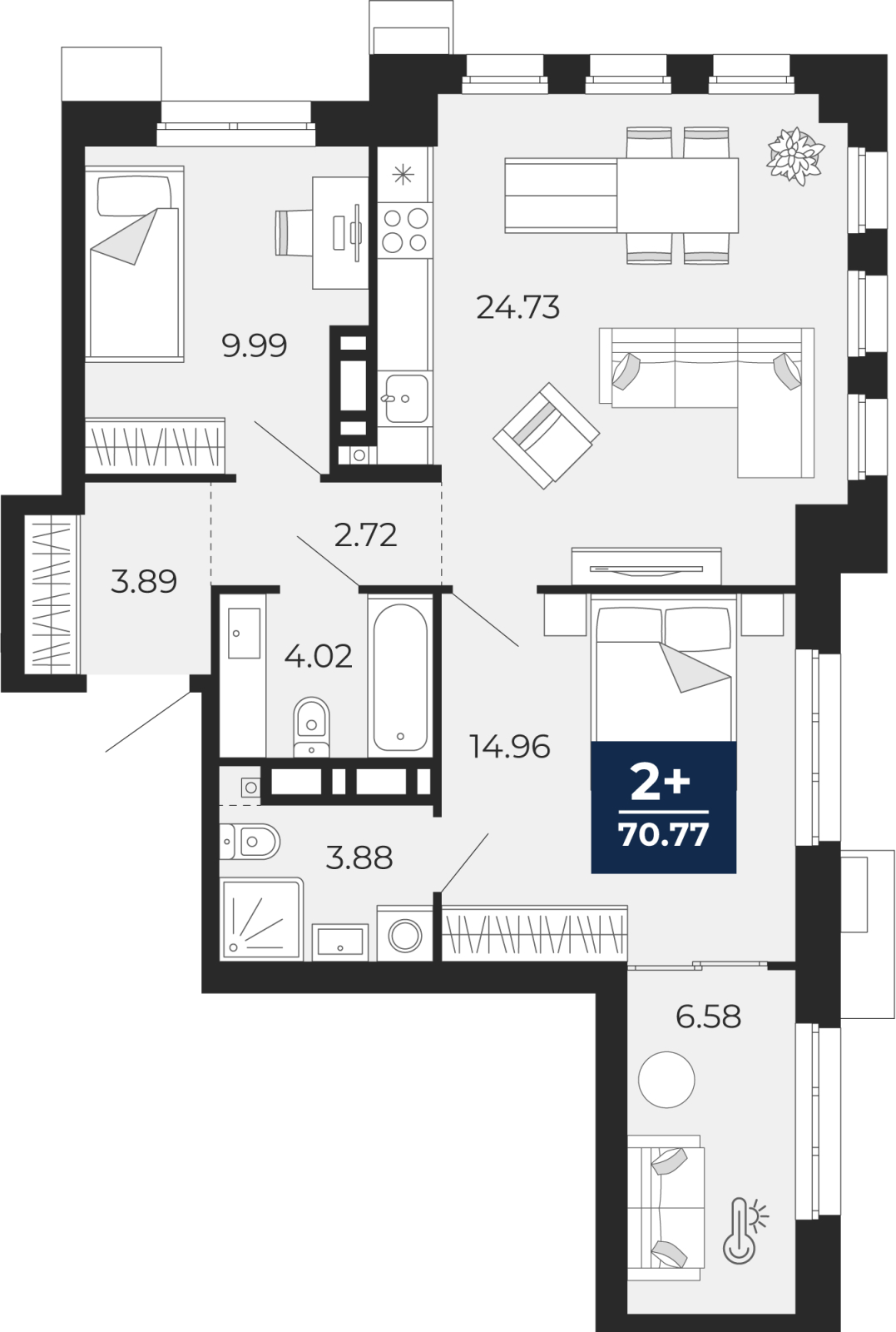 Продается двухкомнатная квартира с предчистовой отделкой в ЖК "Айвазовский City" на 3 этаже. Общая площадь: 70.77 кв.м., жилая: 24.95 кв.м., площадь просторной кухни-столовой: 24.73 кв.м. Квартира угловая, идеально подойдет любителям тишины и панорамных видов. В квартире одна лоджия, два совмещенных санузла. Высота потолков 2.7 м. Дом монолитный, многоподъездный, высотой 24 этажа. Квартира находится в 1-й секции в корпусе ГП-13. На этаже 2 квартиры. Окончание строительства - 4 квартал 2027 года. Оформление сделки по договору долевого участия. Новый жилой район располагается в живописном месте на берегу Туры в центральной части города. Принципиально новое пространство для жизни в центре современного города для тех, чьи мечты сбываются, кто нацелен на постоянный рост, перемены к лучшему для себя и своих близких. Каждая деталь Айвазовский City вдохновляет и заряжает на новые свершения: авторская архитектура, сбалансированная продуманная инфраструктура, дизайнерские дворы со спортивными и детскими площадками, парковые зоны с фонтанами, водный канал, украшающий центральный прогулочный маршрут района и многое другое. В 2019 года проект стал лауреатом престижной премии Urban Awards 2019 в номинации «Лучший строящийся региональный жилой комплекс бизнес-класса». Главная особенность Айвазовский City - соседство разных архитектурных школ в рамках одного дома. Изысканная классика, выразительная эклектика и оригинальный модерн - жить в одном из таких домов настоящий повод для гордости. Айвазовский City это идеальное сочетание комфорта, технологий и развитой инфраструктуры. Вход в подъезд возможен с улицы и со двора. Отправляясь на работу или за покупками, жители могут выйти с внешней стороны дома, а для прогулки с ребенком – со стороны двора. Экологически чистые материалы и энергосберегающие технологии, качественное освещение общественных зон, видеонаблюдение по всей территории жилого района (в том числе в подъездах, лифтах и в подземном паркинге), закрытые дворы с доступом только для жителей Айвазовский City. Часть домов в Айвазовский City будут оснащены подземным паркингом. Востребованный в нашем климатическом поясе формат хранения автомобилей защитит собственность владельца в любое время года. Аккредитация в банках: ПАО «Газпромбанк», «Сбербанк России», ОАО «Альфа-Банк», ПАО Банк «ВТБ», ПАО Банк «ФК Открытие» и других. (AQID02520730)