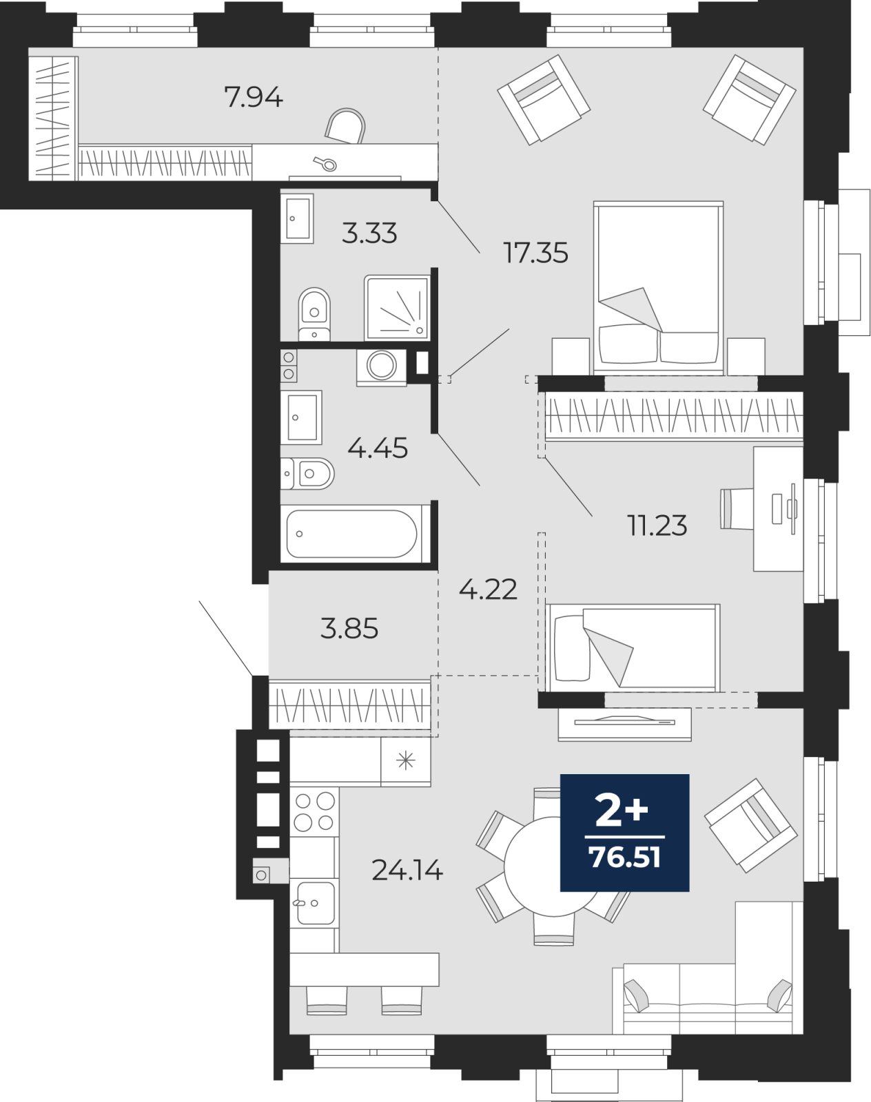 - Общая площадь 76.51 м²