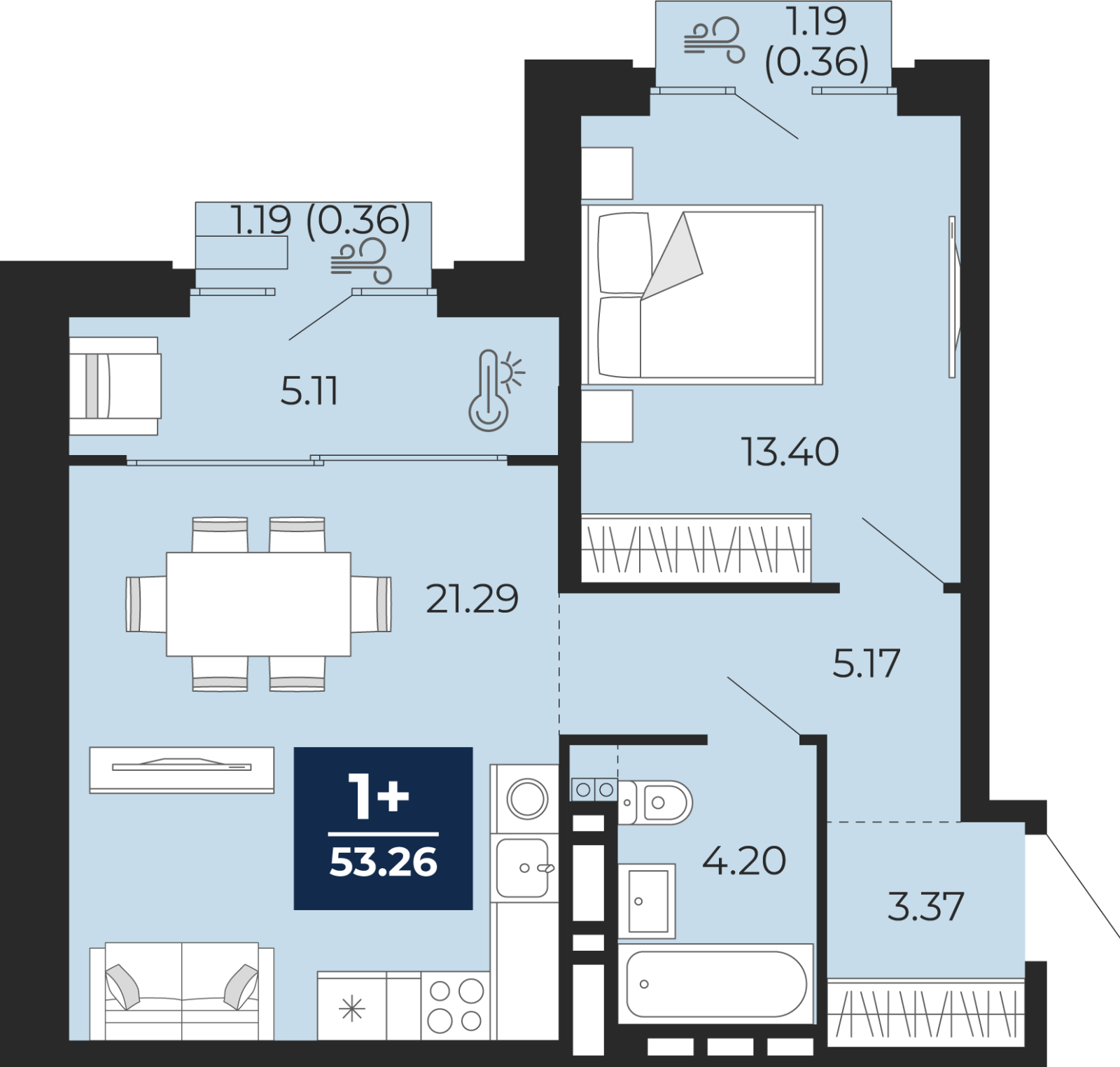 1-комн. квартира от застройщика с предчистовой отделкой в ЖК "Айвазовский City" на 5 этаже. Общая площадь: 53.26 кв.м., жилая: 13.4 кв.м., площадь просторной кухни-столовой: 21.29 кв.м. Все окна выходят на одну сторону. В квартире одна лоджия, один совмещенный санузел. Высота потолков 2.7 м. Дом монолитный, многоподъездный, высотой 24 этажа. Квартира находится в 4-й секции в корпусе ГП-12. На этаже 5 квартир. В подъезде 1 пассажирский и 1 грузовой лифт. Окончание строительства - 4 квартал 2028 года. Оформление сделки по договору долевого участия. Новый жилой район располагается в живописном месте на берегу Туры в центральной части города. Принципиально новое пространство для жизни в центре современного города для тех, чьи мечты сбываются, кто нацелен на постоянный рост, перемены к лучшему для себя и своих близких. Каждая деталь Айвазовский City вдохновляет и заряжает на новые свершения: авторская архитектура, сбалансированная продуманная инфраструктура, дизайнерские дворы со спортивными и детскими площадками, парковые зоны с фонтанами, водный канал, украшающий центральный прогулочный маршрут района и многое другое. В 2019 года проект стал лауреатом престижной премии Urban Awards 2019 в номинации «Лучший строящийся региональный жилой комплекс бизнес-класса». Главная особенность Айвазовский City - соседство разных архитектурных школ в рамках одного дома. Изысканная классика, выразительная эклектика и оригинальный модерн - жить в одном из таких домов настоящий повод для гордости. Айвазовский City это идеальное сочетание комфорта, технологий и развитой инфраструктуры. Вход в подъезд возможен с улицы и со двора. Отправляясь на работу или за покупками, жители могут выйти с внешней стороны дома, а для прогулки с ребенком – со стороны двора. Экологически чистые материалы и энергосберегающие технологии, качественное освещение общественных зон, видеонаблюдение по всей территории жилого района (в том числе в подъездах, лифтах и в подземном паркинге), закрытые дворы с доступом только для жителей Айвазовский City. Часть домов в Айвазовский City будут оснащены подземным паркингом. Востребованный в нашем климатическом поясе формат хранения автомобилей защитит собственность владельца в любое время года. Аккредитация в банках: ОАО «Альфа-Банк», «Сбербанк России», ПАО «Газпромбанк», ПАО Банк «ВТБ», АО "ДОМ.РФ" и других. (AQID02525672)