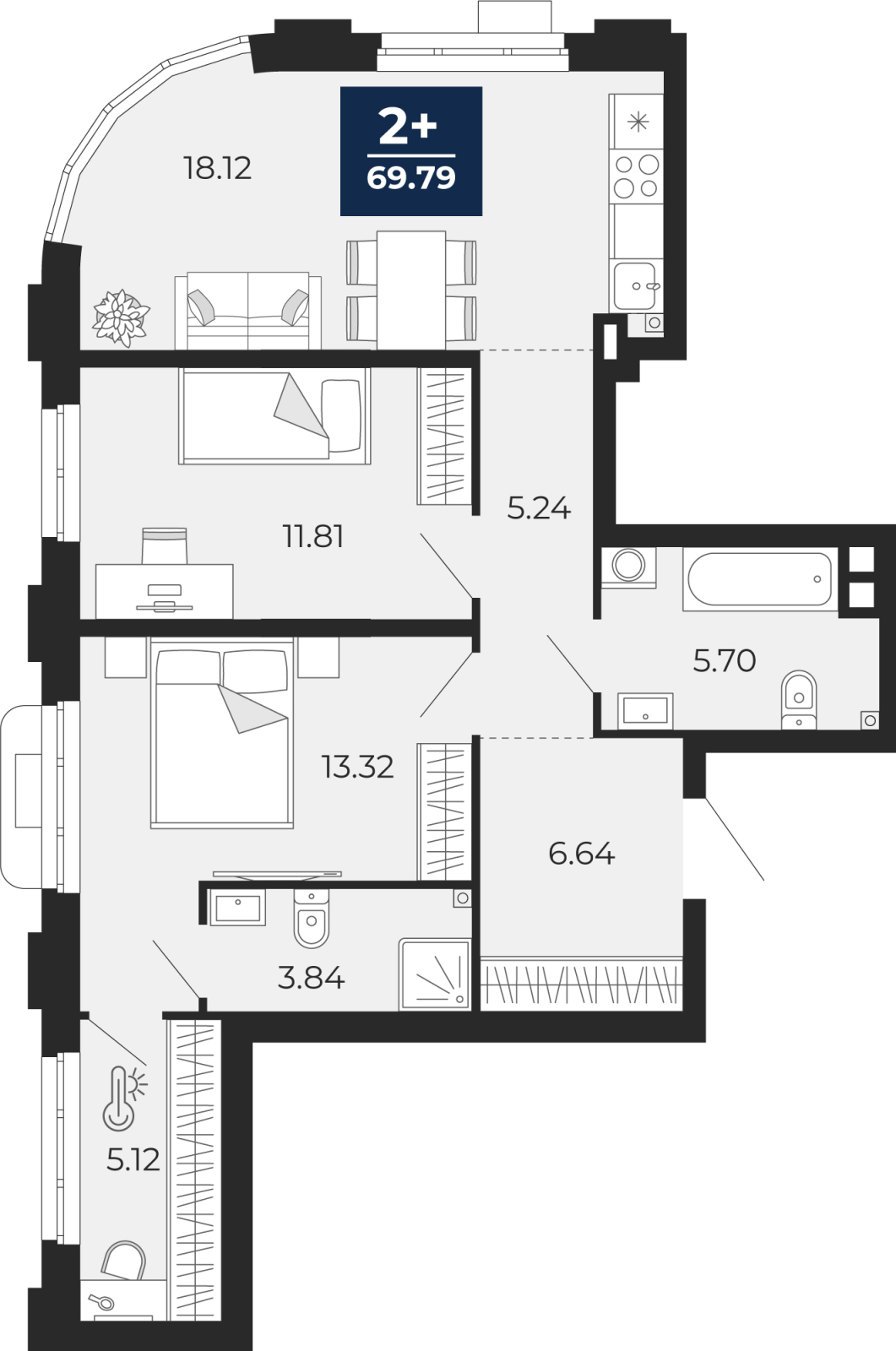 Просторная 2-комн. квартира с предчистовой отделкой в ЖК "Айвазовский City" на 2 этаже. Общая площадь: 69.79 кв.м., жилая: 25.13 кв.м., площадь просторной кухни-столовой: 18.12 кв.м. Угловая квартира, окна oбecпeчивaют paвнoмepнoe ocвeщeниe в тeчeниe дня. В квартире одна лоджия, один совмещенный санузел. Высота потолков 2.7 м. Дом монолитный, многоподъездный, высотой 24 этажа. Квартира находится в 5-й секции в корпусе ГП-12. На этаже 5 квартир. В подъезде 1 пассажирский и 1 грузовой лифт. Окончание строительства - 4 квартал 2028 года. Оформление сделки по договору долевого участия. Новый жилой район располагается в живописном месте на берегу Туры в центральной части города. Принципиально новое пространство для жизни в центре современного города для тех, чьи мечты сбываются, кто нацелен на постоянный рост, перемены к лучшему для себя и своих близких. Каждая деталь Айвазовский City вдохновляет и заряжает на новые свершения: авторская архитектура, сбалансированная продуманная инфраструктура, дизайнерские дворы со спортивными и детскими площадками, парковые зоны с фонтанами, водный канал, украшающий центральный прогулочный маршрут района и многое другое. В 2019 года проект стал лауреатом престижной премии Urban Awards 2019 в номинации «Лучший строящийся региональный жилой комплекс бизнес-класса». Главная особенность Айвазовский City - соседство разных архитектурных школ в рамках одного дома. Изысканная классика, выразительная эклектика и оригинальный модерн - жить в одном из таких домов настоящий повод для гордости. Айвазовский City это идеальное сочетание комфорта, технологий и развитой инфраструктуры. Вход в подъезд возможен с улицы и со двора. Отправляясь на работу или за покупками, жители могут выйти с внешней стороны дома, а для прогулки с ребенком – со стороны двора. Экологически чистые материалы и энергосберегающие технологии, качественное освещение общественных зон, видеонаблюдение по всей территории жилого района (в том числе в подъездах, лифтах и в подземном паркинге), закрытые дворы с доступом только для жителей Айвазовский City. Часть домов в Айвазовский City будут оснащены подземным паркингом. Востребованный в нашем климатическом поясе формат хранения автомобилей защитит собственность владельца в любое время года. Аккредитация в банках: «Сбербанк России», ПАО Банк «ВТБ», ПАО «Газпромбанк», ОАО «Альфа-Банк», ПАО «Промсвязьбанк» и других. (AQID02525714)