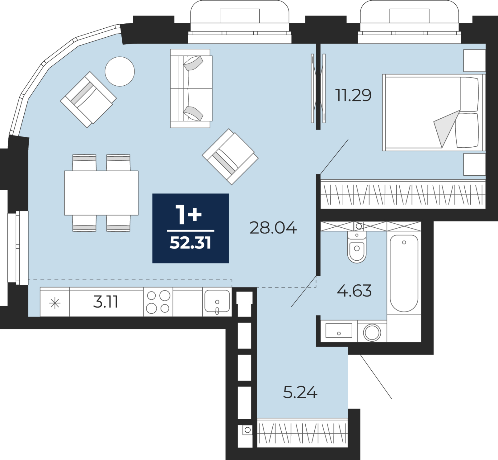 - Общая площадь 52.31 м²