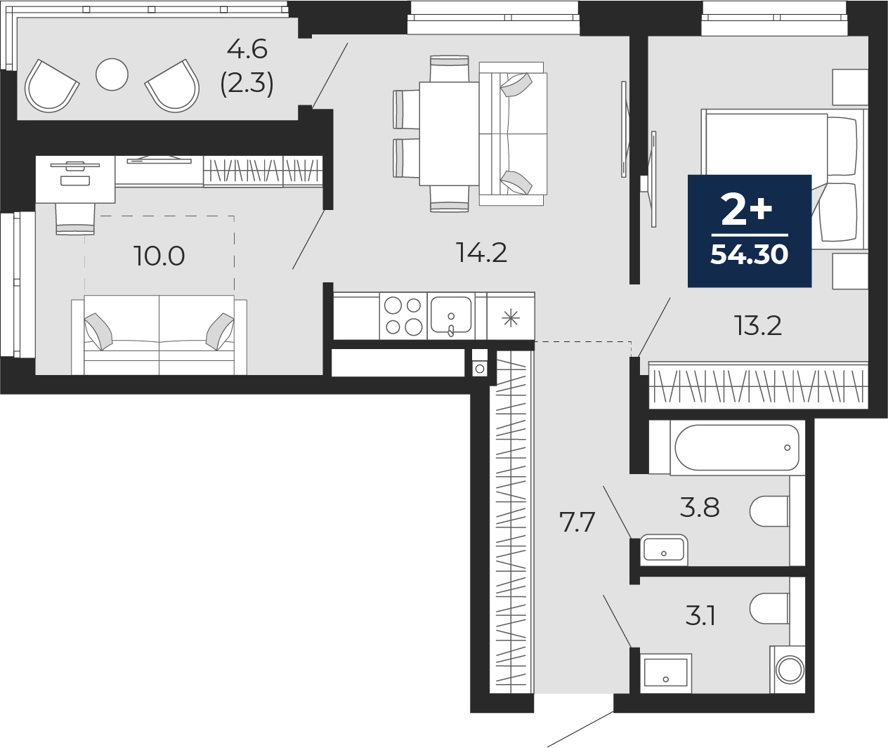 7 941 803 руб. 146 258 руб./м² Квартира 2-комн., 54 м2, 21/25 этаж, Тобольский, д. 103