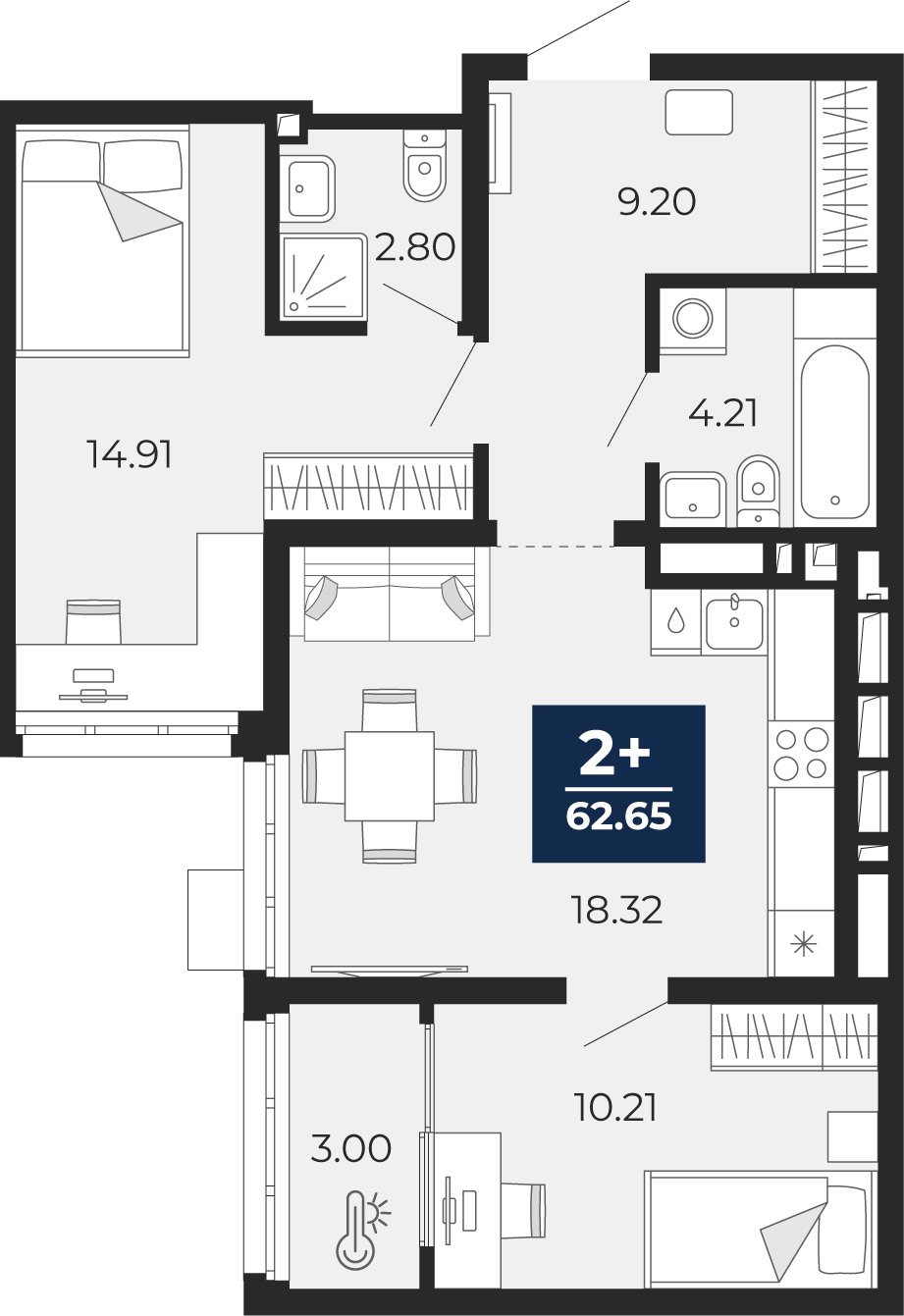 Продается 2-комн. квартира с предчистовой отделкой в ЖК "Беринг" на 23 этаже. Общая площадь: 62.65 кв.м., жилая: 25.12 кв.м., площадь просторной кухни-столовой: 18.32 кв.м. Комнаты изолированные, все окна выходят на одну сторону. В квартире одна лоджия, два совмещенных санузла. Высота потолков 2.72 м. Дом монолитный, многоподъездный, переменной этажности, от 17 до 24 этажей. Квартира находится в 3-й секции высотой 24 этажа в корпусе ГП-75. На этаже 6 квартир. В подъезде 2 пассажирских и 1 грузовой лифт. Окончание строительства - 4 квартал 2027 года. Оформление сделки по договору долевого участия. Подобно знаменитому исследователю, мы чувствуем себя первооткрывателями этой локации. Хотим показать новую суть места, сформировать для вас жизненный опыт, которого ещё не было. Беринг — район зелёного цвета. Беринг — район, который откроется вам с другой стороны. Впечатлит новым уровнем комфорта и качеством жизни. Беринг — открытие на карте города. Первый квартал расположен в районе Тура, в границах улиц: Камчатская – Западносибирская – Энтузиастов. Вокруг уже есть всё для того, чтобы ежедневная рутина была лишь частью жизни и не доставляла дискомфорта. Школы и детские сады, магазины и аптеки, поликлиника, места для семейного отдыха, пеших и велопрогулок, и даже рыбалки. Масштабное озеленение дворов — визитная карточка ЭНКО и ваш оазис спокойствия, чтобы отвлечься от повседневности. Раскидистые деревья, кустарники, травы и цветы — осталось остановиться, вдохнуть и расслабиться, глядя на эту природную красоту. Стилистика подъездов продолжает концепцию Беринга, вдохновлённого Камчаткой: сдержанный, но при этом впечатляющий дизайн соседствует с удобством и функциональностью. (AQID02529747)