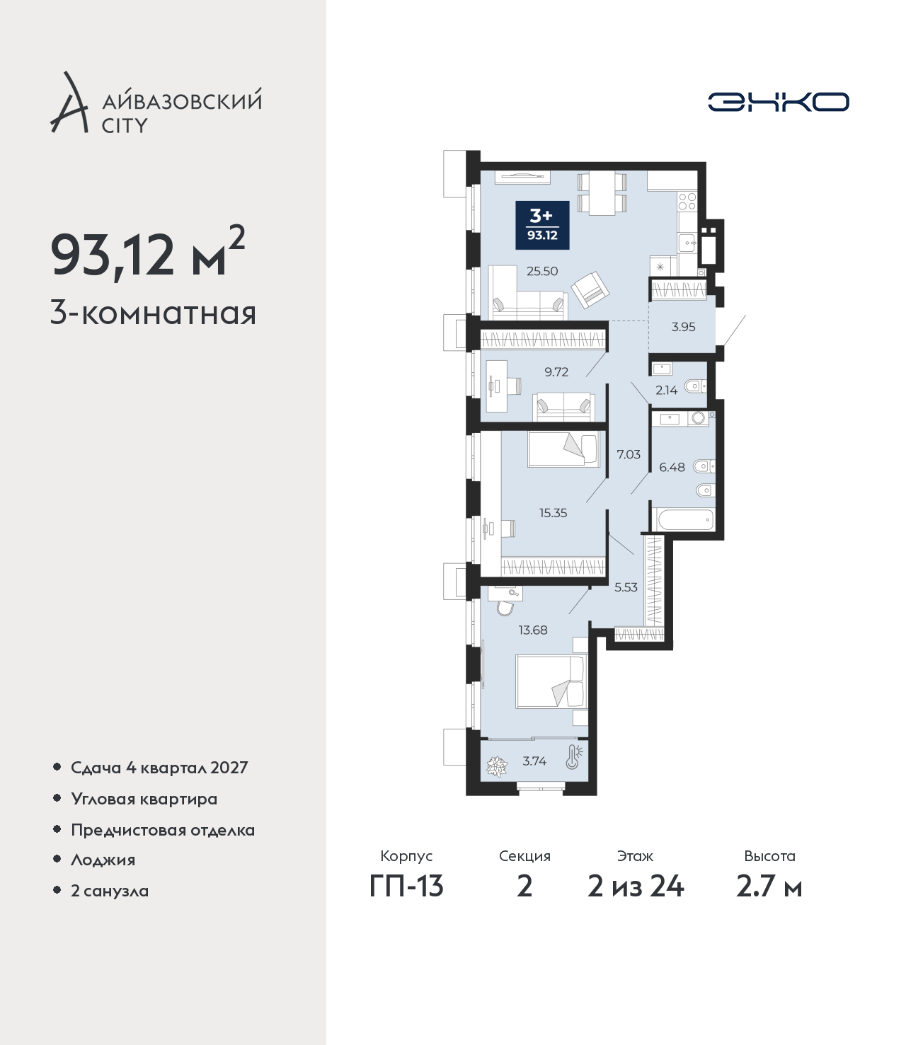 - Общая площадь 93.12 м²