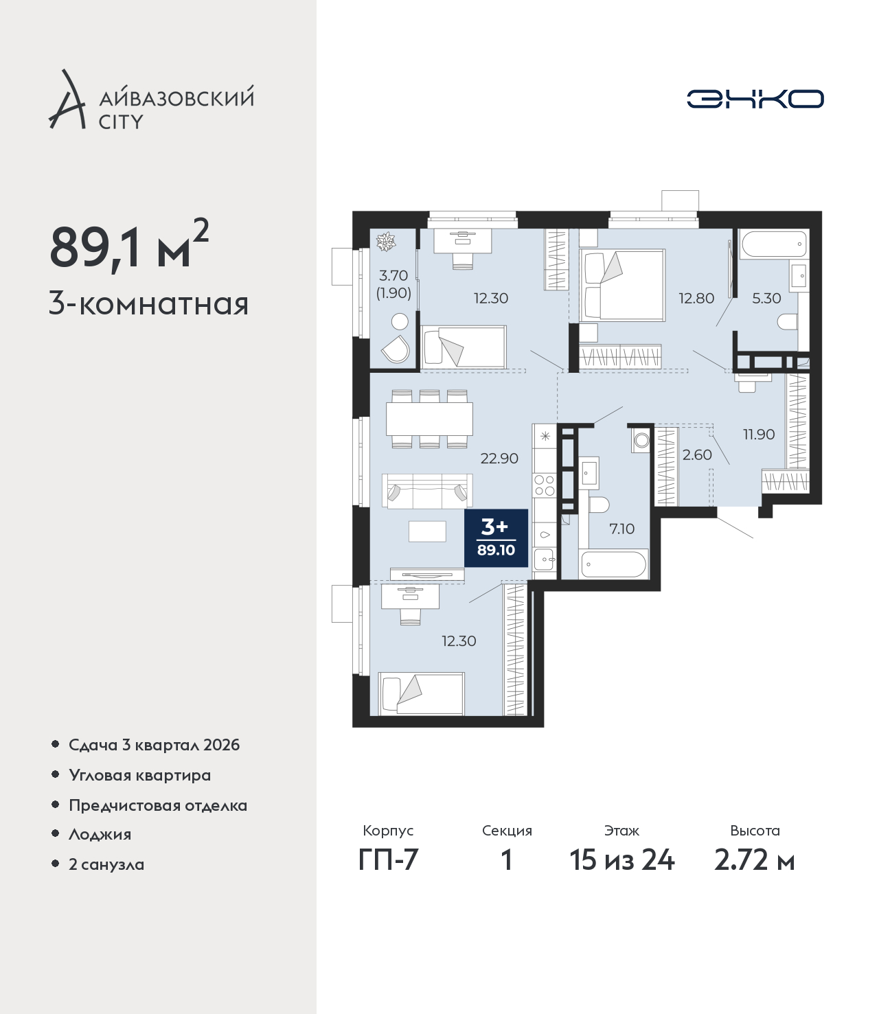 - Общая площадь 89.1 м²