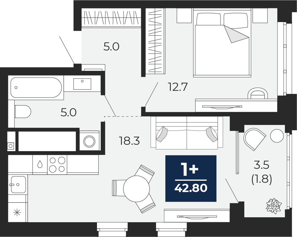 1-комн. квартира от застройщика с предчистовой отделкой в ЖК "Мириады" на 15 этаже. Общая площадь: 42.8 кв.м., жилая: 12.9 кв.м., площадь просторной кухни-столовой: 16.1 кв.м. Все окна выходят на одну сторону. В квартире один балкон, один совмещенный санузел. Высота потолков 2.7 м. Дом монолитный, многоподъездный, переменной этажности, от 14 до 16 этажей. Квартира находится в 4-й секции высотой 16 этажей в корпусе ГП-72.102. На этаже 6 квартир. В подъезде 1 пассажирский и 1 грузовой лифт. Окончание строительства - 4 квартал 2025 года. Оформление сделки по договору долевого участия. Вселенная бесконечных историй. Ранее невиданный Тюмени масштаб: территория 240 гектаров и 1 650 000 м² застройки. Мириады – это город масштабных перемен и больших возможностей. Город зеленых рощ и зеркальных озер. Город для работы, учебы и развлечений. Город для детей и их родителей. Город для всех и каждого. Проект расположен в районе Мыс рядом с ТРЦ «Тюмень Сити Молл» в границах улицы Тимофея Чаркова, Тобольского тракта и объездной дороги. Срок полного освоения территории - до 2034 года. (AQID02522784)